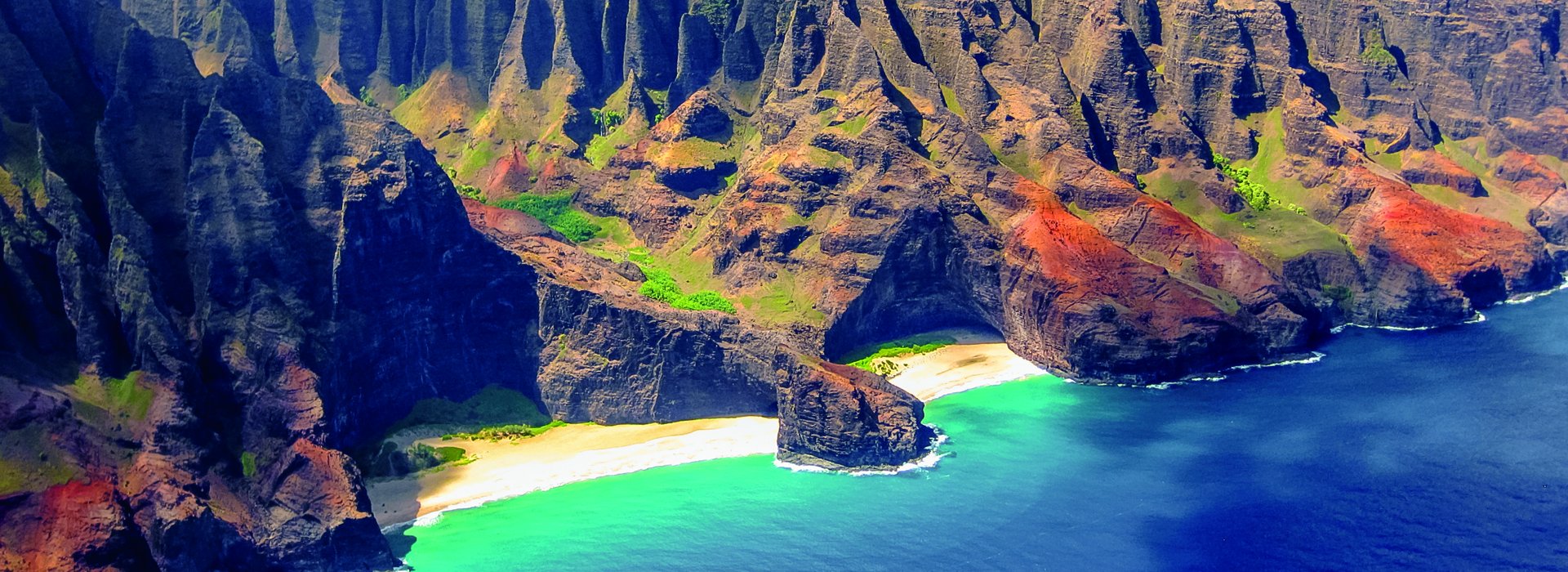 Tag 6–10: Weiterflug auf die Garteninsel Kauai. Hier empfehlen wir ein schönes Strandresort und einen Mietwagen für Ausflüge in die üppige Vegetation. Die tropische Kulisse im Inland war Drehort vieler Hollywoodfilme wie z. B. Jurassic Park und an der Küste warten gigantische Felsklippen und Blaslöcher.