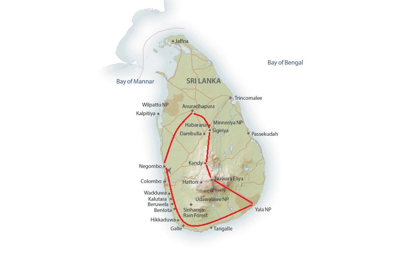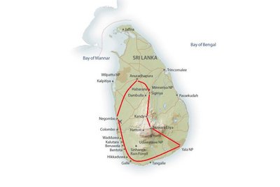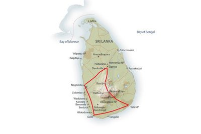 Dambulla - Sigiriya - Anuradhapura - Polonnaruwa - Kandy - Nuwara Eliya - Yala Nationalpark - Bolgoda