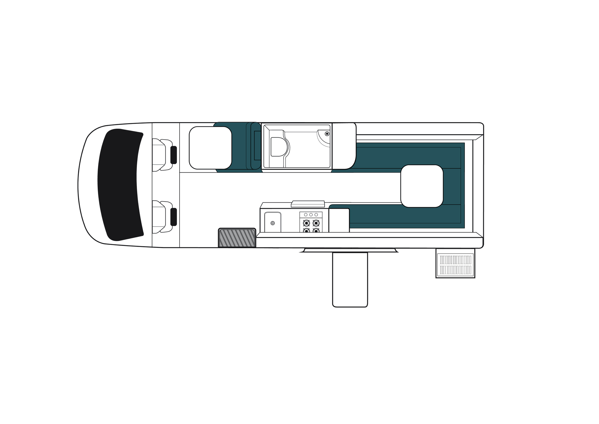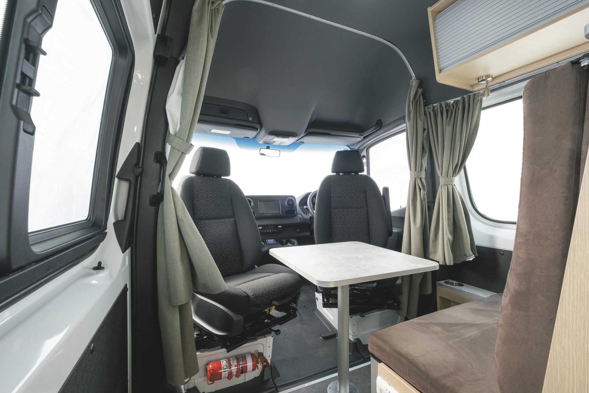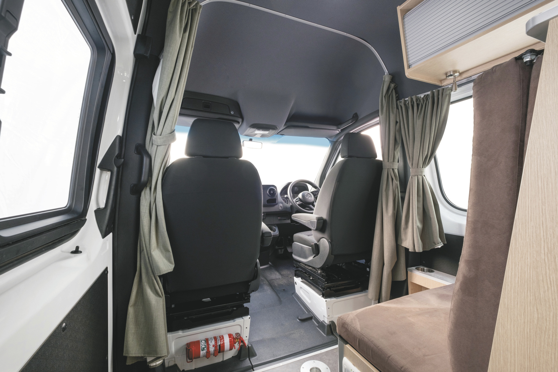 • 2 Sitzplätze in Fahrerkabine (zum Wohnbereich drehbar)