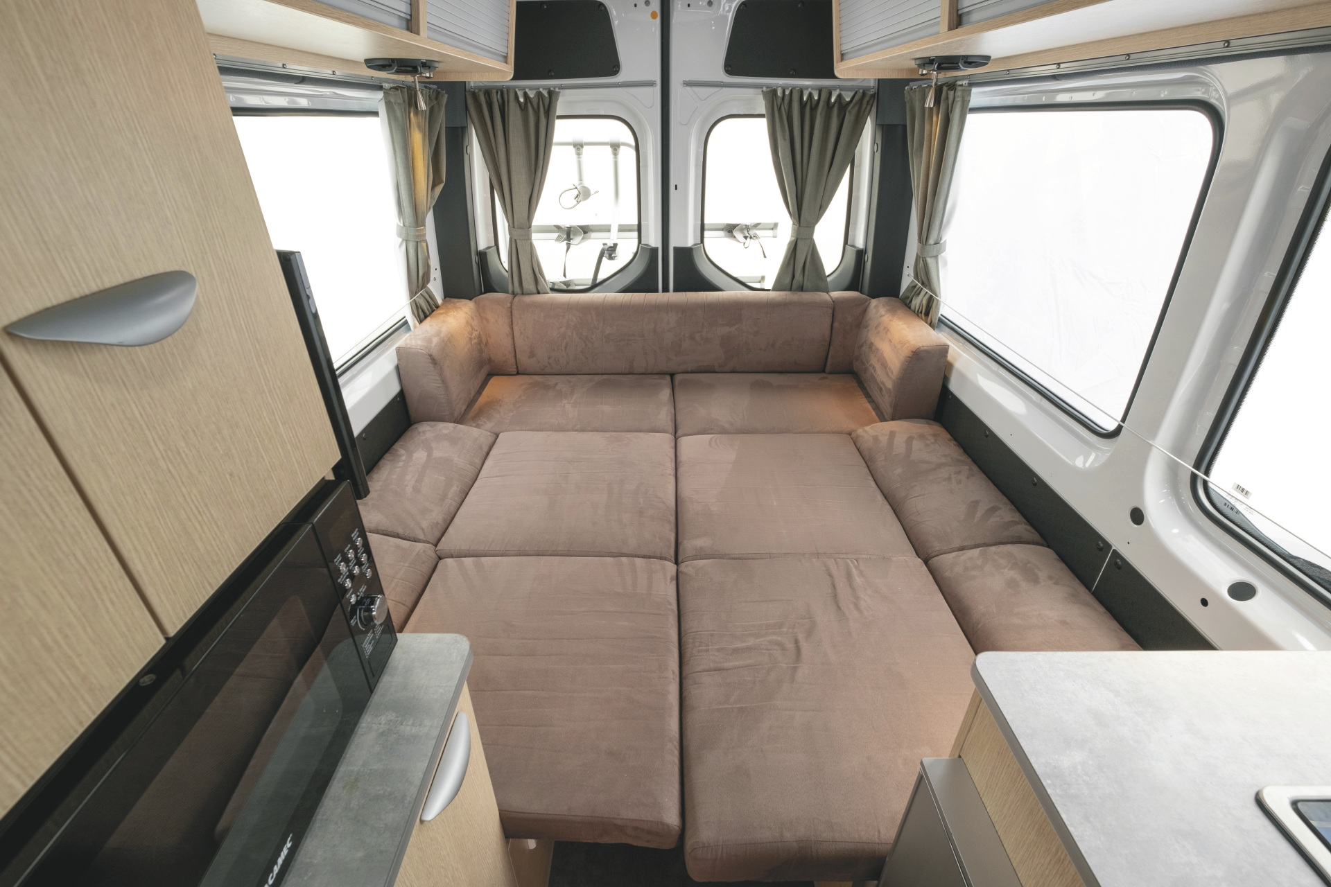 • Sitzgruppe im Heck, zum großen Doppelbett (1,91 x 1,78 m) umbaubar