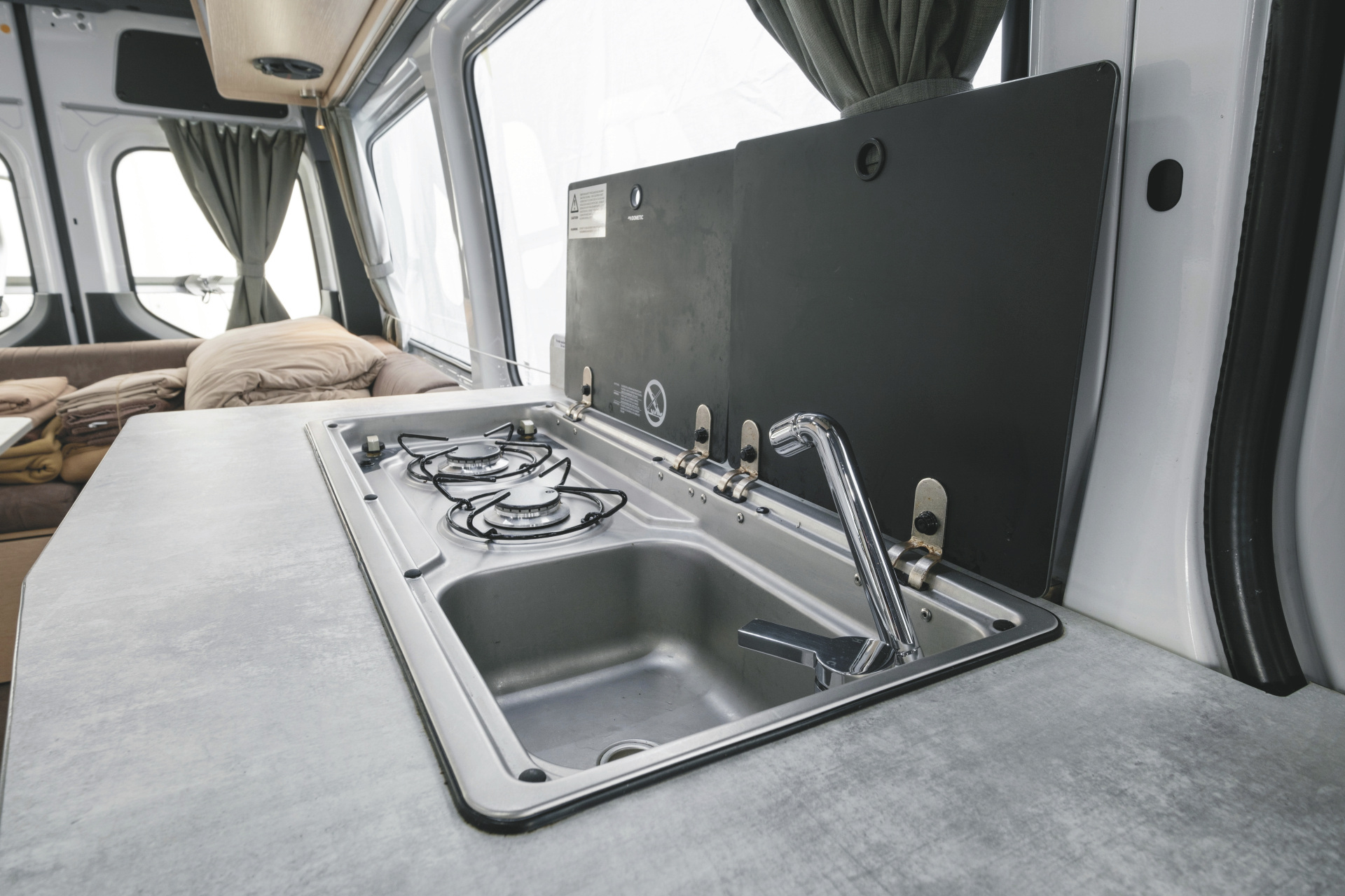 • Gaskocher innen sowie zusätzlich außen ausziehbarer Gaskocher