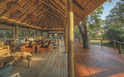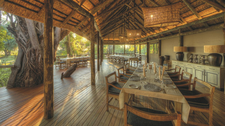 Die Gemeinschaftsbereiche des Camp Moremi umfassen eine versenkte Bar, meisterhaft um einen großen Termitenhügel und Ebenholzbaum gebaut, sowie einen großzügigen Lounge-Bereich, der zu einer erweiterten Bibliothek und einem privaten Deck führt. Diese Bereiche, einschließlich des erhöhten Speiseraums, sind durch einen Steg mit der Feuerstelle vor dem Camp verbunden. Ergänzt werden die öffentlichen Bereiche durch ein Freiluft-Boma und einen Pool.