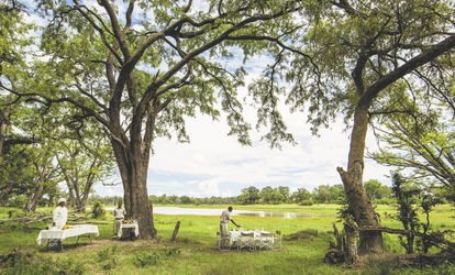 Das Camp liegt am Rande der Xakanaxa Lagune, innerhalb des Moremi Wildreservats. Die Flugzeit beträgt ab Maun ca. 30 Minuten, ab Kasane ca. 1 Stunde.