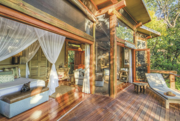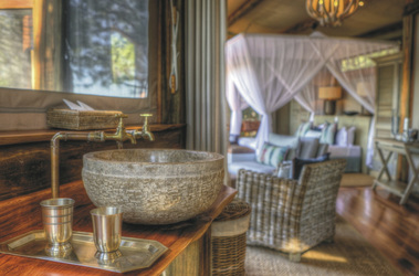 Der Hauptbereich des Camp Okavango besteht aus einem Netzwerk von miteinander verbundenen Gehwegen, die zwei Lounge-Bereiche, einen Speisebereich, eine Bibliothek, eine Selbstbedienungsbar und einen Souvenirladen miteinander verbinden. Sanfte Rampen führen zur unteren Terrasse mit zwei Feuerstellen und bequemen Sitzbereichen, die zum Entspannen und Genießen der natürlichen Umgebung einladen. Es gibt eine dritte Terrasse mit einem Pool und einem strohgedeckten Lounge-Bereich für die warmen Sommertage.Gäste, die drei Nächte oder mehr im Camp Okavango verbringen, können eine Nacht auf dem neuen Sleep Out Deck unter dem Sternenhimmel genießen. Das Schlafdeck umfasst ein bequemes Bett (mit Moskitonetz), ein Badezimmer und alle Annehmlichkeiten, die Sie für eine komfortable Nacht im Freien benötigen.
