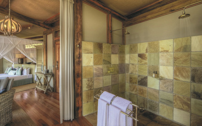 Die 12 Safarizelte wurden auf erhöhten Holzplattformen errichtet und befinden sich inmitten der dichten Vegetation des Okavango Deltas. Jedes der Zelte verfügt über ein Badezimmer mit Doppelwaschbecken, eine doppelte Dusche und eine separate Toilette (mit Aussicht). Die verschiebbaren Fenstertüren öffnen sich zu einem privaten Aussichtsdeck, das einen schönen Blick über das Okavango Delta bietet. Das Familienzimmer besteht zudem aus zwei Schlafzimmern mit jeweils eigenem Badezimmer.