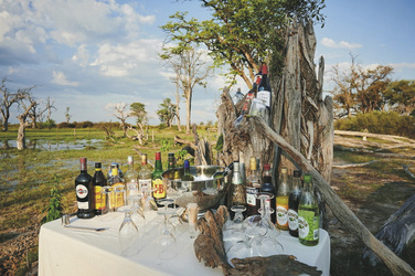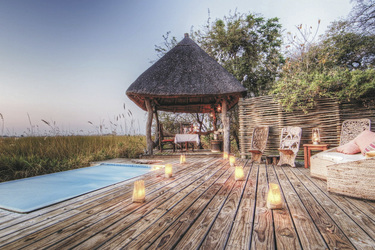 Im Camp herrscht eine entspannte und freundliche Atmosphäre und der persönliche, fürsorgliche Service vermittelt ein Gefühl von Heimkehr. Die stilvollen Hauptgebäude erstrecken sich über den Khwai Fluss und sind auf erhöhten Plattformen gebaut, um die Aussicht auf die umliegenden Lagunen und Inseln optimal zu nutzen. Die eleganten Lounge- und Speiseräume, aus heimischem Holz, Schilf und Reet gebaut, umfassen eine kleine Bibliothek, ein großzügiges Sonnendeck, einen Pool und eine Sala mit Tagesbett. Das Feuerdeck ragt über den Khwai Fluss hinaus und schafft eine bezaubernde Atmosphäre zum Entspannen nach dem Abendessen. Im weitläufigen Gelände gibt es zudem einen größeren Pool mit erhöhtem Sonnendeck.Eingeschlossene Aktivitäten: Pirschfahrten und Bootsfahrten.