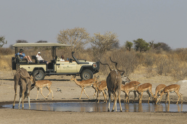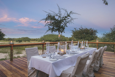Der Hauptbereich von Dinaka erstreckt sich über erhöhte Plattformen und umfasst großzügige Sitz- und Essbereiche, eine gemütliche Bar sowie einen einladenden Pool – mit einem weiten Blick auf das nahegelegene Wasserloch, das regelmäßig Wildtiere anzieht. Im gesamten Reservat sorgen strategisch platzierte Verstecke und unterirdische Bunker an verschiedenen Wasserstellen für außergewöhnliche Möglichkeiten zur Wild- und Vogelbeobachtung – perfekt auch für Fotografen. Ein besonderes Highlight ist das Sleep Out Deck, das Gästen einen unvergesslichen Panoramablick und die einmalige Gelegenheit bietet, unter dem funkelnden afrikanischen Sternenhimmel zu übernachten.Eingeschlossene Aktivitäten: Wanderungen mit San-Buschmännern, Pirschfahrten.