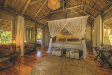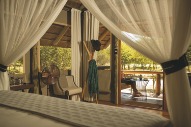 Die 7 geräumigen Zelte verfügen jeweils über große Betten mit Moskitonetzen, Standventilatoren, eine kleine Veranda sowie ein eigenes Badezimmer mit Innen- und Außendusche. Familien werden in einem Zelt mit zwei Schlafzimmern untergebracht, die sich ein geräumiges eigenes Bad teilen. Die Zelte von Dinaka stehen in großen Abständen auf Holzdecks, von denen aus man einen perfekten Blick auf ein permanentes Wasserloch hat. Alle Bereiche des Camps sind durch Holzstege miteinander verbunden.