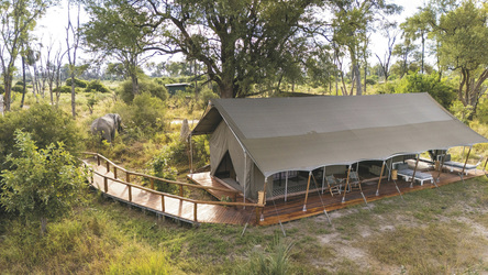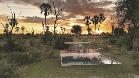 Im östlichen Teil des Okavango Deltas, in einer sehr wildreichen privaten Konzession gelegen. Flugzeit ab Maun etwa 15 Minuten und Transfer vom Flugfeld zum Camp etwa 40 Minuten.