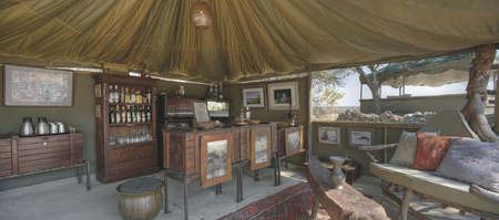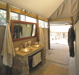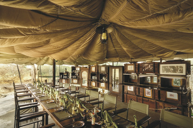 Die insgesamt 10 klassischen Safarizelte (davon 2 Familienzelte) liegen auf einer 30 Meter hohen Klippe über dem Fluss und die private Terrasse bietet Tierbeobachtungsmöglichkeiten rund um die Uhr, eine Art „Sessel-Safari“. Jedes Zelt ist im klassischen Stil gehalten, mit ein paar charmanten Besonderheiten wie handgewebte Stoffe aus der Region kombiniert mit Möbeln im Kolonialstil und einfachen Einrichtungsgegenständen, die durch Farbakzente aufgefrischt werden. Alle Zelte sind solarbetrieben und verfügen über Standventilatoren, internationale Steckdosen und voll ausgestattete Badezimmer mit Innen- und Außendusche.