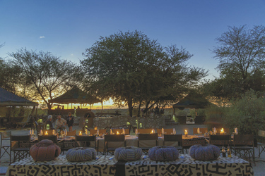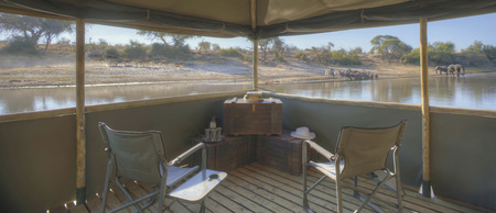 Die Canvas-Lounge- und Speisezelte bestechen durch ihre einmalige Ausstattung mit Büchern, Schmuckstücken und Artefakten aus vergangenen Zeiten. Das Highlight ist eine kunstvoll gestaltete Krokodil-Skulptur! Und sie steht nicht ohne Grund dort – Meno a Kwena bedeutet wörtlich „Zähne des Krokodils“. Von fast jedem bequemen Sessel im Wohnbereich können Sie den Fluss im Auge behalten oder in den Felsenpool eintauchen und die Tiere unten beobachten, wie sie dasselbe tun.Eingeschlossene Aktivitäten: Pirschfahrten, Bootsfahrten (wasserabhängig), Buschwanderungen mit San Buschmännern. Ab drei Übernachtungen ist ein Sleep Out unter den Sternen in der Makgadikgadi Salzpfanne inkludiert (Mai-Sept, wetterabhängig, muss vorgebucht werden!).