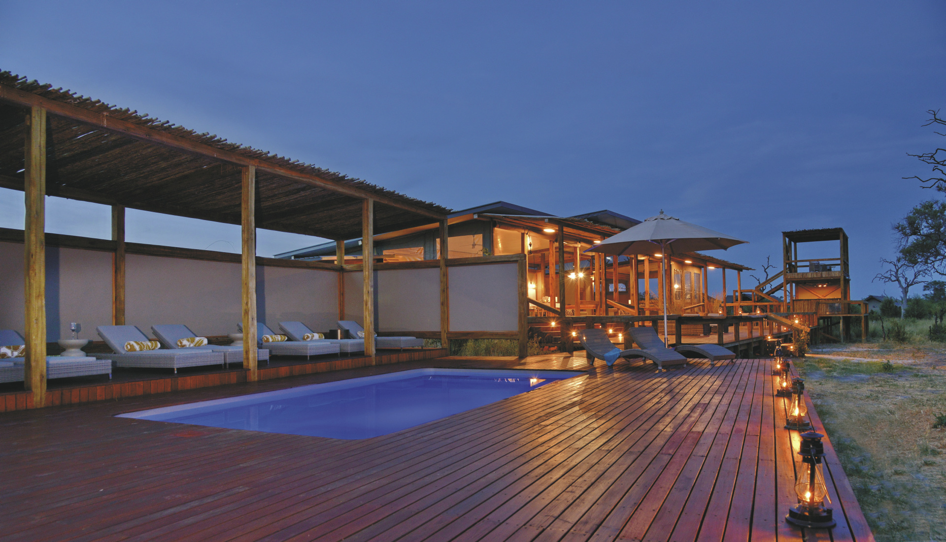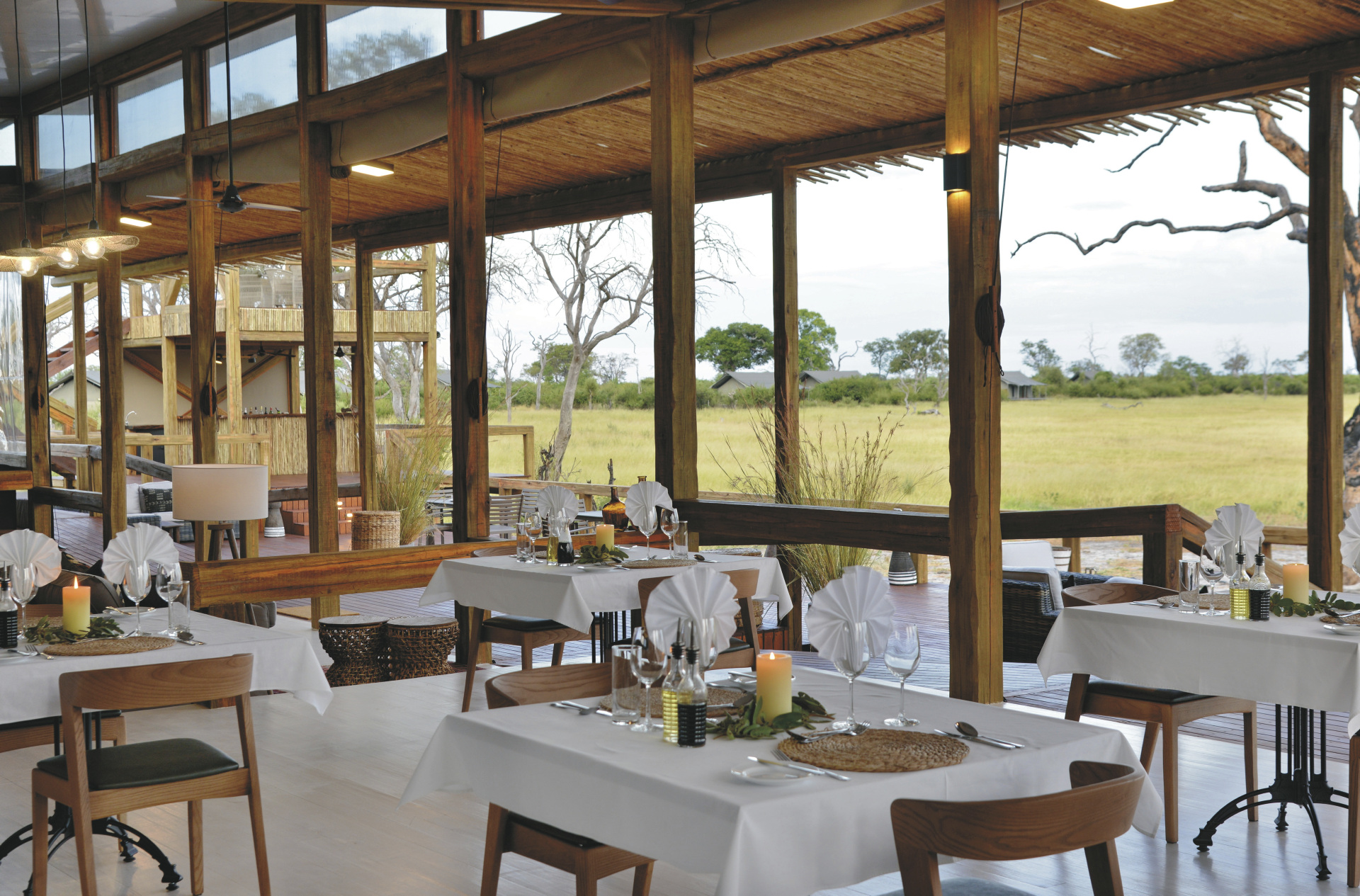 Im Hauptbereich befinden sich ein offener Essbereich, eine Bar und verschiedene Sitzbereiche, in denen Sie inmitten der Wildnis entspannen können. Eine erhöhte Aussichtsplattform lädt die Gäste ein, den botswanischen Nachthimmel zu bewundern und bietet hervorragende Möglichkeiten zur Sternenbeobachtung. Außerdem können Sie auf der Poolterrasse die Seele baumeln lassen und sich in den Sessel setzen, um eine Safari zu erleben.