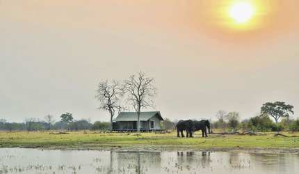 Die Lodge überblickt die Kwikamba-Pfanne und bietet ihren Gästen ein authentisches Safarierlebnis.