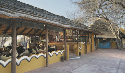 Im Herzen des Camps befindet sich eine riesige Bar, geschmückt mit Kronleuchtern aus Weinflaschen und Stühlen aus Kuhfellen. Ein À-la-carte-Menü sorgt dafür, dass die Geschmacksknospen auf ihre Kosten kommen und die noch größere Getränkekarte stillt den Durst, den ein Tag in der Wüste hinterlassen hat – und es gibt viele interessante Leute, mit denen Sie diese Erfrischungen teilen können. Draußen glitzert verlockend der größte und kühlste Pool der Kalahari, ebenso wie die schattigen Liegestühle und Braai-Bereiche.Eine Vielzahl an optionale Aktivitäten werden angeboten: Ausflüge in die Salzpfannen per Quadbike oder mit dem Safarifahrzeug, Besuch der Erdmännchen, Wanderungen, Dorfbesuche, Sleep Out in der Salzpfanne und Pirschfahrten im Makgadikgadi Pans Nationalpark.