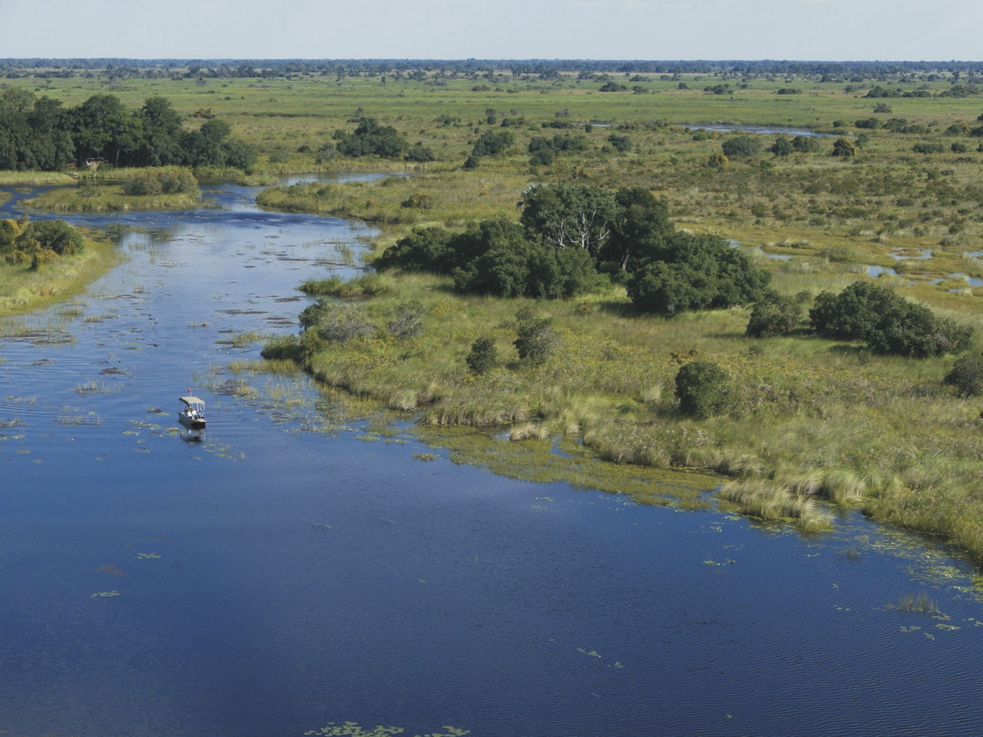 Am Rand des Okavango Deltas in einer privaten Konzession auf einer mit Palmen und Ebenholzbäumen bewachsenen Insel mit Blick auf die Shinde Lagune gelegen. Die hervorragende Lage von Shinde im Okavango Delta gewährleistet eine Kombination aus ständigem Wasserzugang für ganzjährige Wasseraktivitäten und großen Trockengebieten für Pirschfahrten. Die Flugzeit von Maun beträgt etwa 25 Minuten.