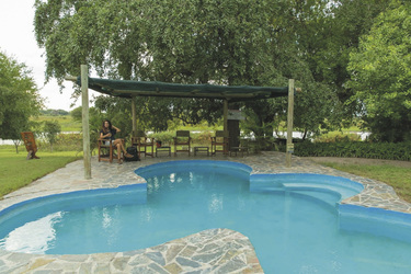 Die Lodge, aus Stein und Reet erbaut, schmiegt sich unter hohen Bäumen an die Ufer des Flusses und bietet eine ruhige Oase, die den Komfort der Stadtnähe mit einer friedlichen Umgebung verbindet. Während Ihres Aufenthalts können Sie Getränke und Mahlzeiten in der offenen Bar oder im Restaurant genießen und dabei die spektakulären Sonnenuntergänge über dem Fluss bewundern.