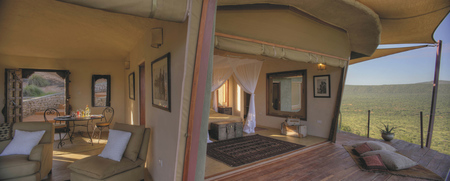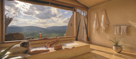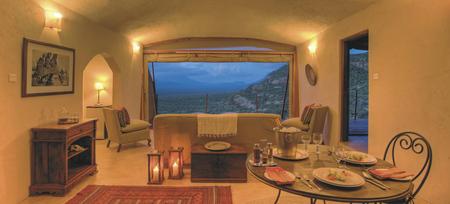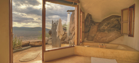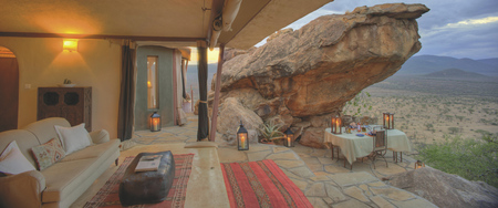 6 großzügige Villen mit Veranda, Bad und Außendusche schmiegen sich an zerklüftete Felsen. In der Ferne grüßt der Mt. Kenya.
