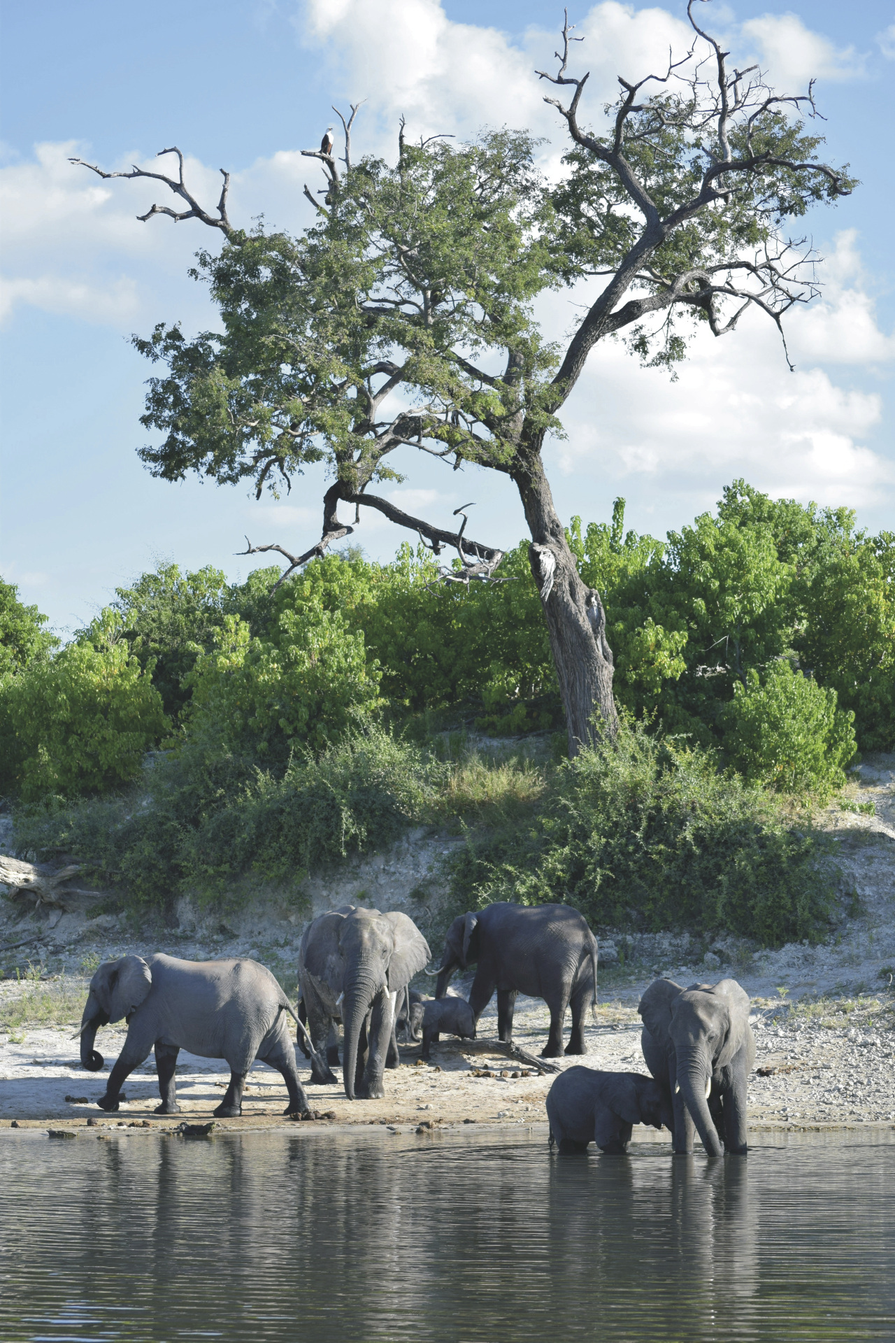 Khwai Region - Chobe Nationalpark (F/M/A).Es steht Ihnen eine erlebnisreiche Etappe bevor: Sie verlassen die Khwai Region und reisen weiter in Richtung Norden zum Chobe Nationalpark – einem der bekanntesten Parks Afrikas. Die Strecke führt Sie durch das Savuti-Gebiet, das bekannt ist für seine rauen Landschaften, uralten Felszeichnungen und spektakulären Tierbeobachtungen. Unterwegs halten Sie für ein gemütliches Picknick inmitten der Natur an. Am Nachmittag erreichen Sie Ihre Unterkunft: das rustikal-gemütliche Chobe Elephant Camp, das oberhalb der weiten Überschwemmungsebene liegt und einen herrlichen Blick auf die Landschaft bietet.