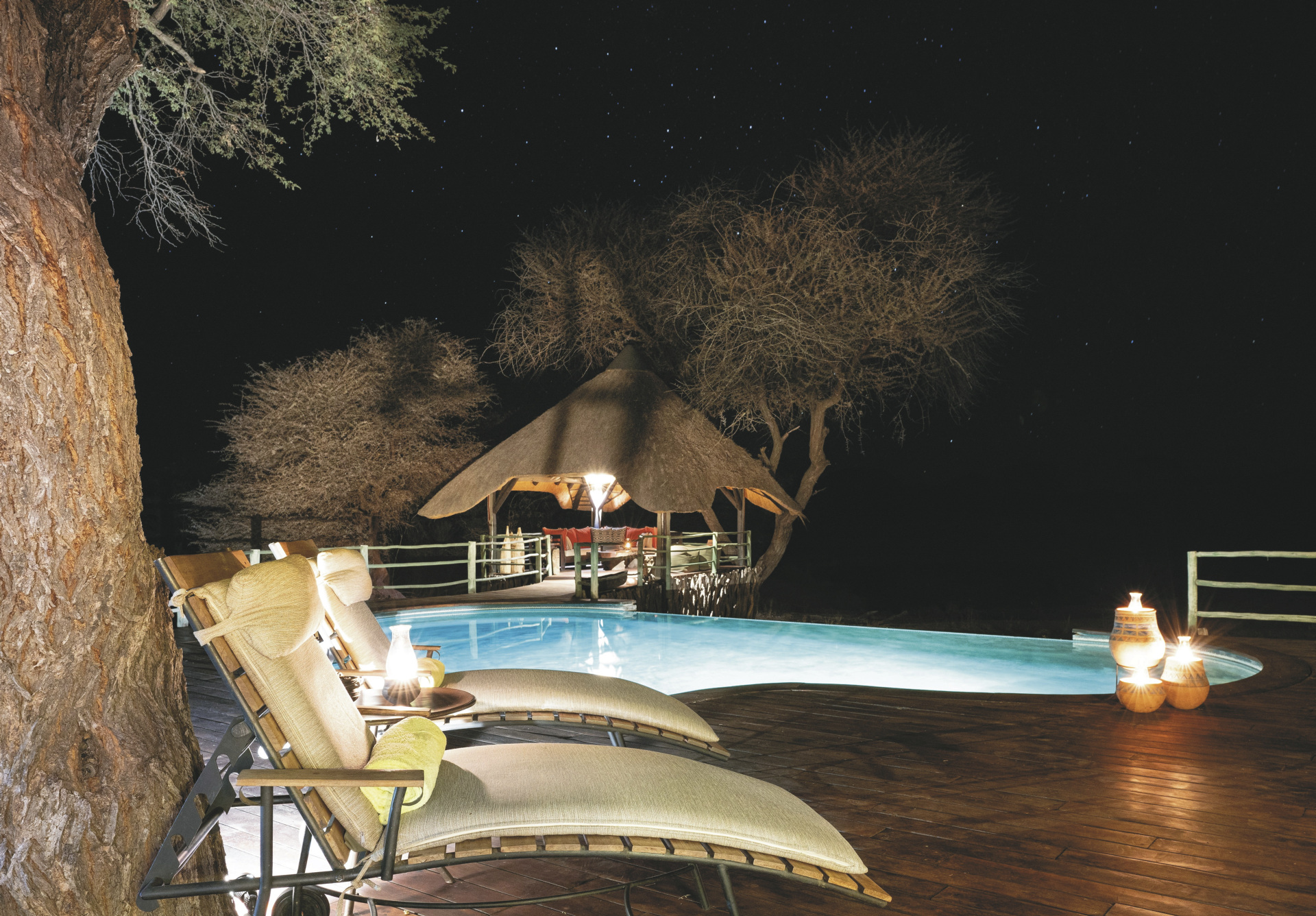 Das sehr persönlich geführte Camp hat einen typischen Safari-Stil. Der Hauptbereich ist offen gestaltet und gibt den Blick auf die Landschaft und das gut besuchte Wasserloch frei. Hier nehmen Sie Ihre Mahlzeiten ein, finden ein leckeres Getränk an der Bar oder treffen auf andere Gäste in der Lounge vorm Kamin oder rund um die Feuerstelle. Zwischen den Aktivitäten genießen Sie ruhige Stunden am Pool.