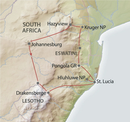 Südafrika ist eines der facettenreichsten Länder im südlichen Afrika und wird oft als "eine Welt in einem Land" beschrieben. Entdecken Sie die natürliche Schönheit Südafrikas, wenn Sie die spektakulären Drakensberge, den Hluhluwe-Umfolozi-Park, den iSimangaliso Wetland Park und den weltberühmten Krüger Nationalpark besuchen. Sie werden nicht nur nach wilden Tieren suchen, sondern auch mehr über die reiche und komplexe Geschichte des Landes erfahren.