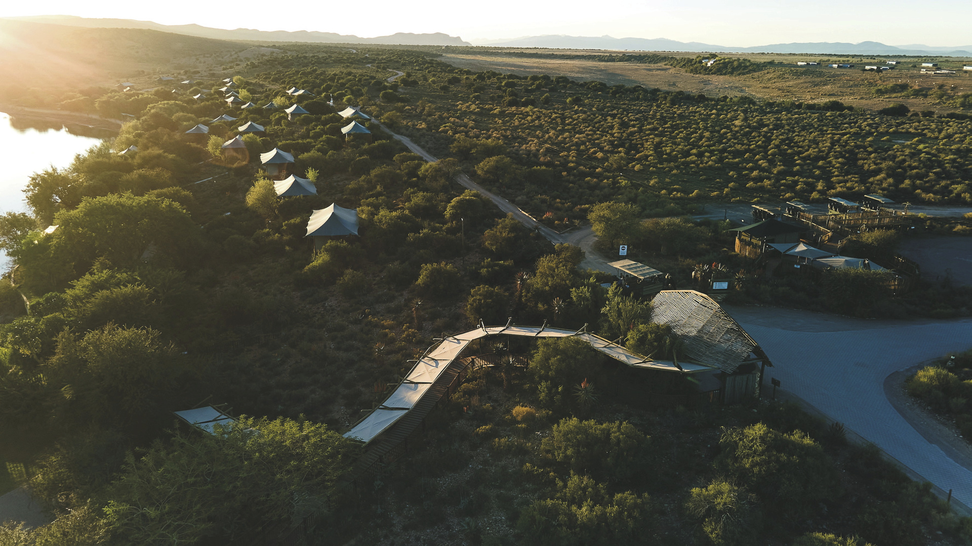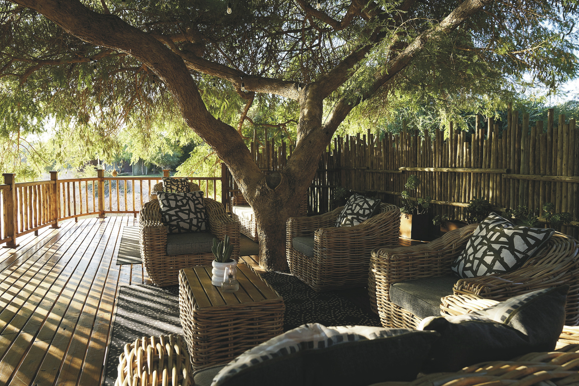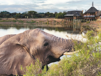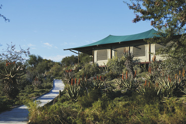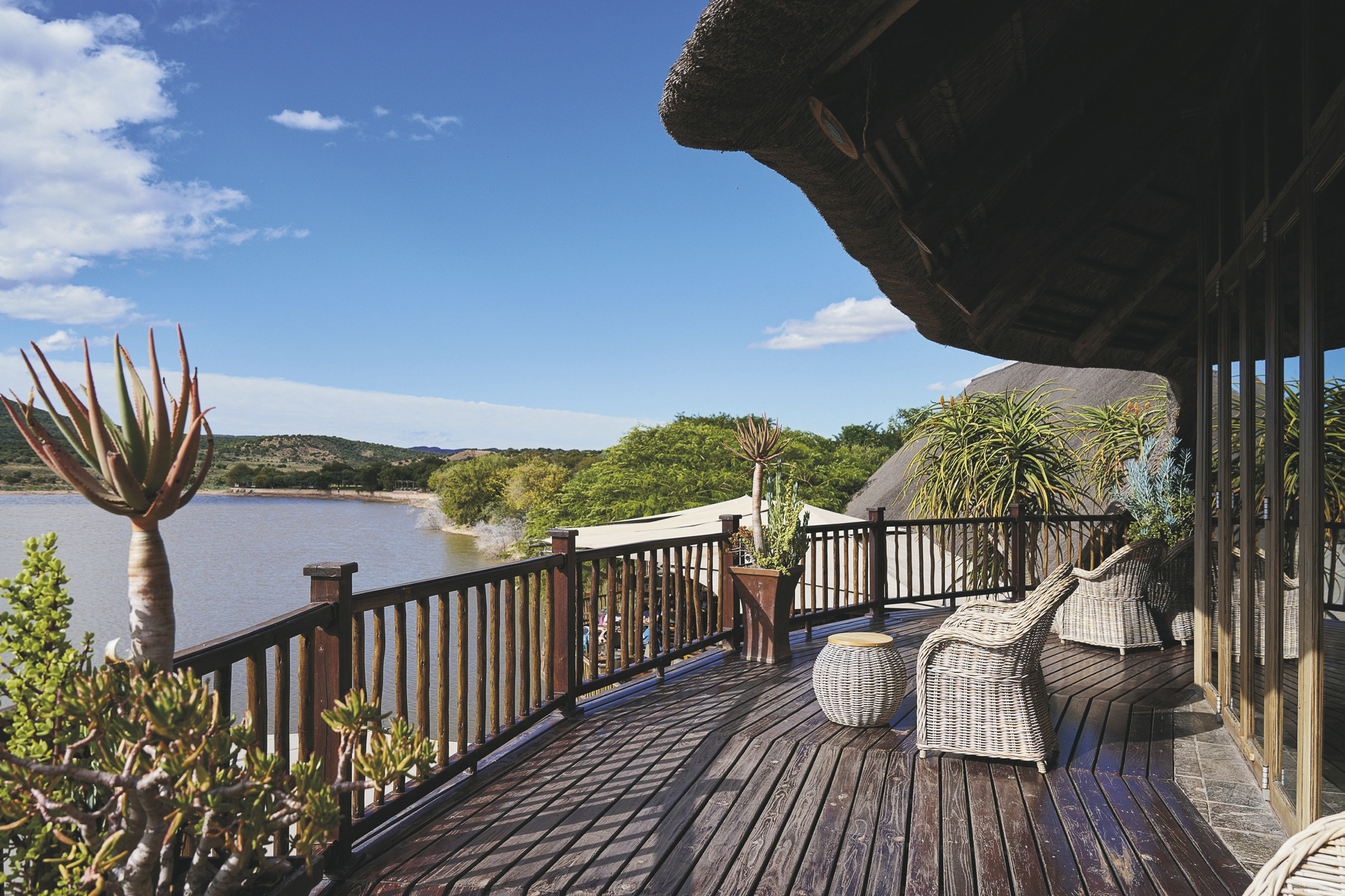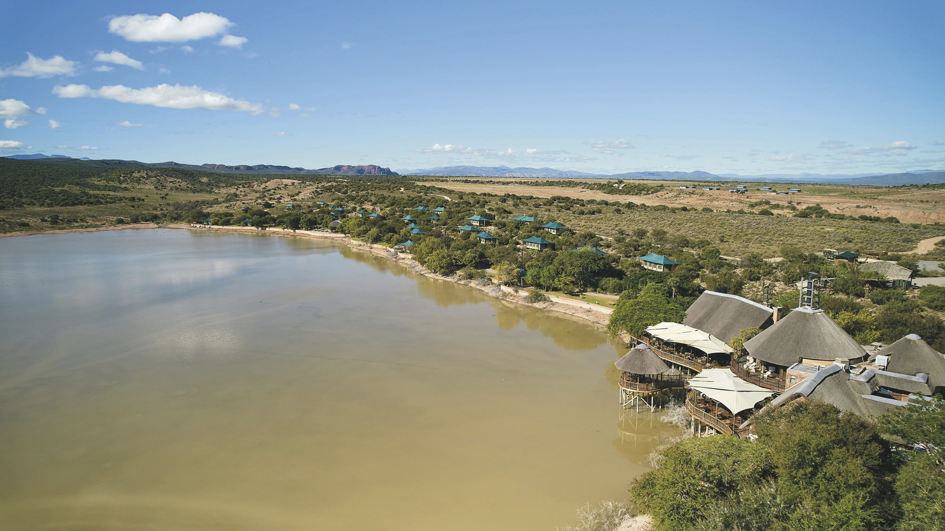 Die gemütliche, reetgedeckte Hauptlodge liegt direkt am Damm und bietet von der großen, überdachten Terrasse einen schönen Blick. Außerdem finden Sie hier eine gemütliche Lounge mit Kamin und einen kleinen Shop. Etwas abseits liegt der Spa, wo Sie eine Behandlung auf der Terrasse erhalten können. Der Pool und die Sonnenterrasse befinden sich zwischen den Superior-Zelten direkt am Damm. Die auf der Lodge lebenden Löwen wurden in Gefangenschaft geboren und können in der Wildnis nicht überleben, da sie nie gelernt haben zu jagen. Es handelt sich dennoch um wilde Löwen, die vom Menschen nicht angefasst werden dürfen, auch nicht von den Wildhütern. Buffelsdrift wurde auch die Heimat von drei verwaisten Elefantenbabys, die mittlerweile ausgewachsen sind, aber ebenfalls nicht mehr ausgewildert werden können, sie kennen ihre Feinde nicht und sind nicht sozialverträglich mit anderen Elefanten. Die Lodge bietet viele optionale Aktivitäten an: Pirschfahrt, Nachtpirschfahrt, Begegnung mit den Elefanten, Geparden-Tracking, Besuch zur Fütterungszeit im Löwen-Schutzgebiet, geführte Wanderung zu den Felsmalereien, Erdmännchen-Safari.