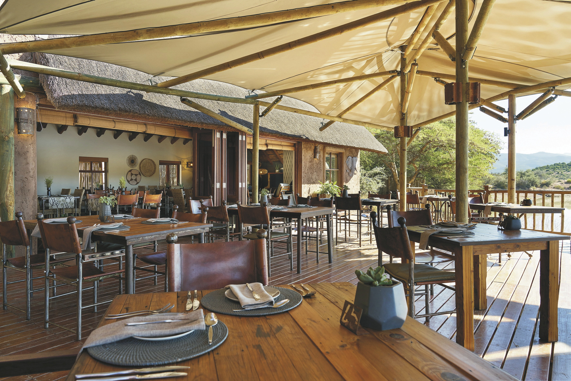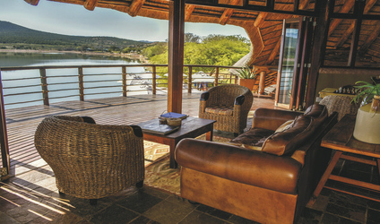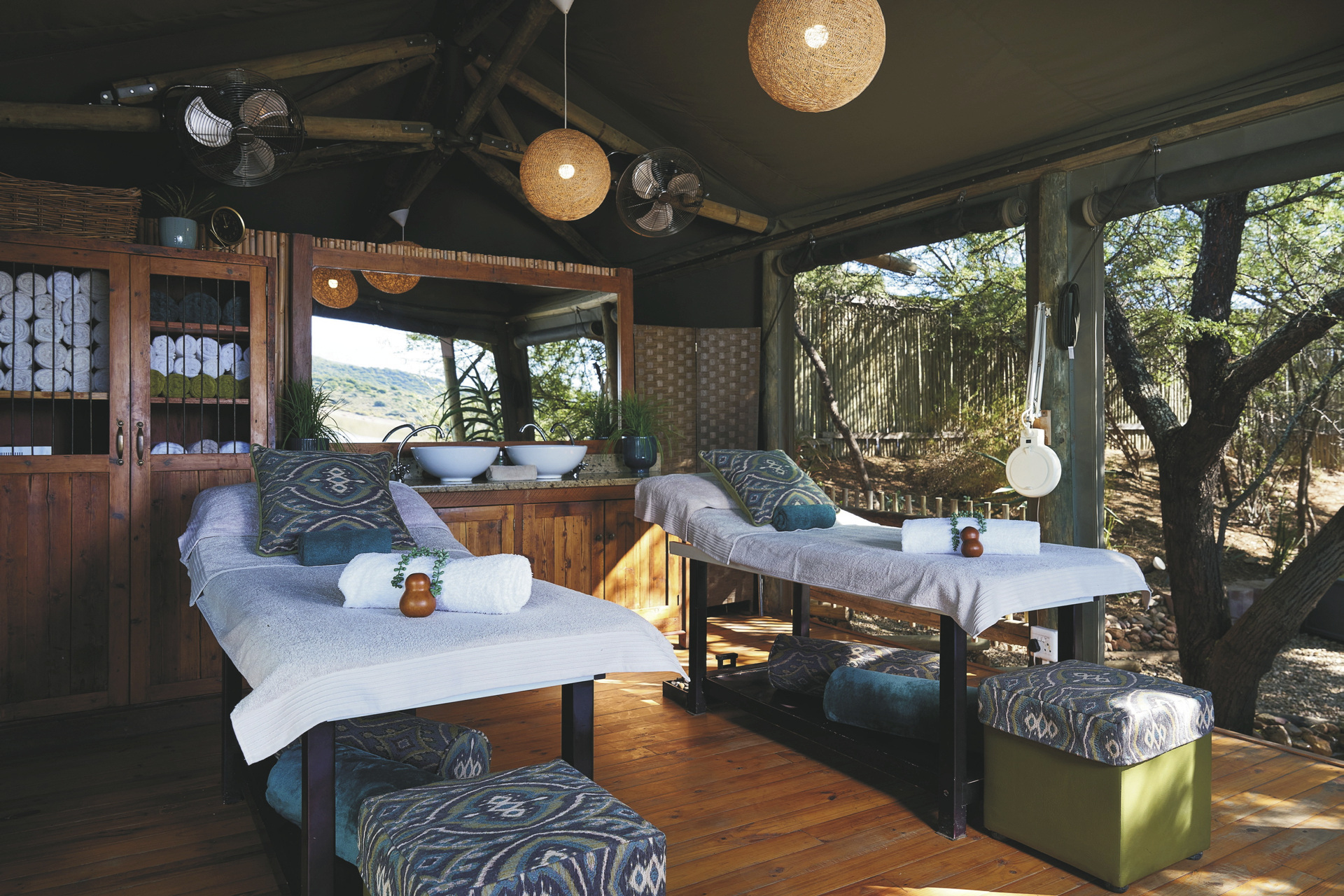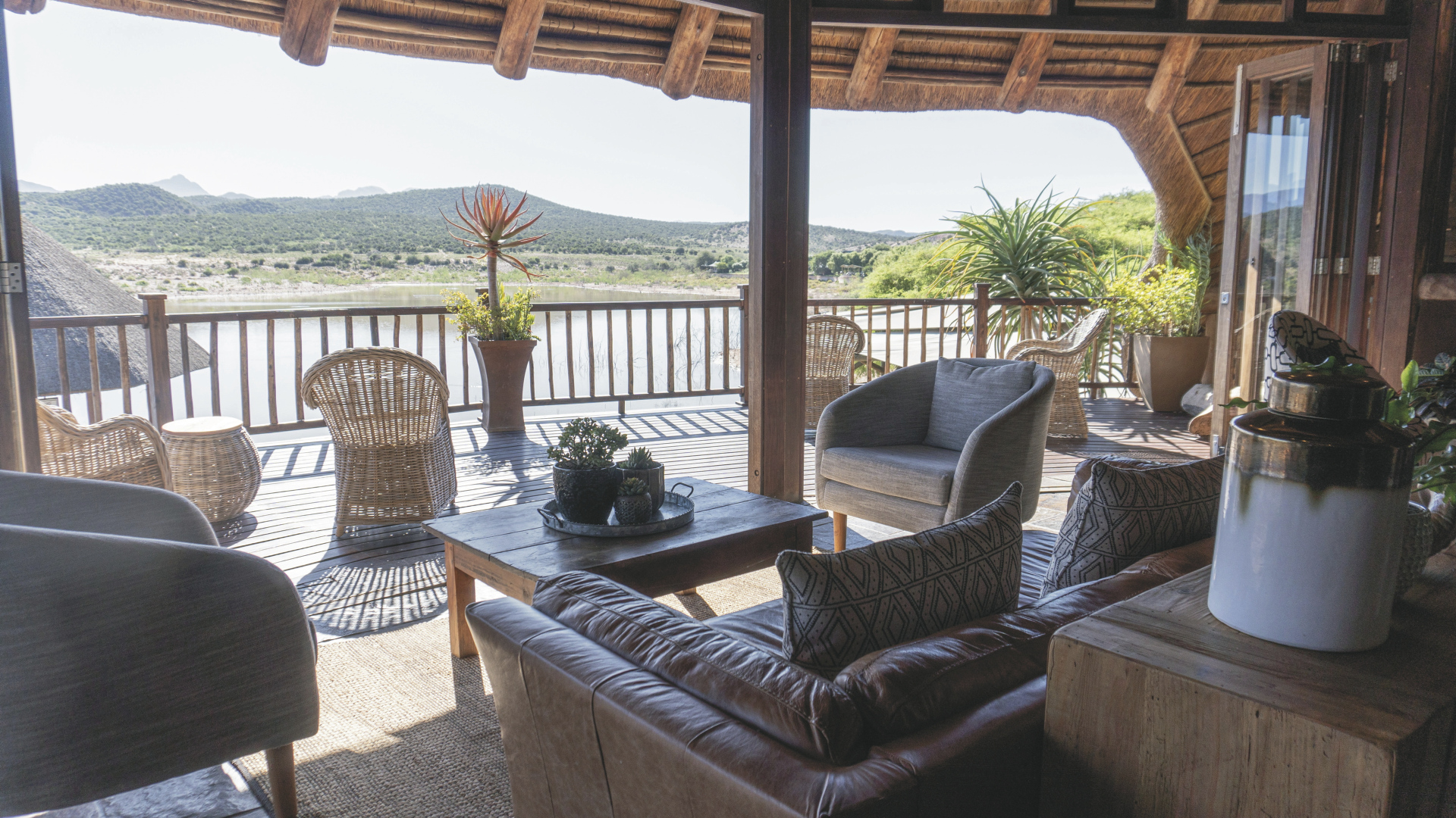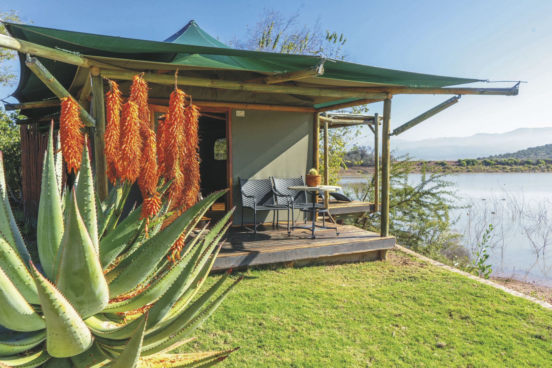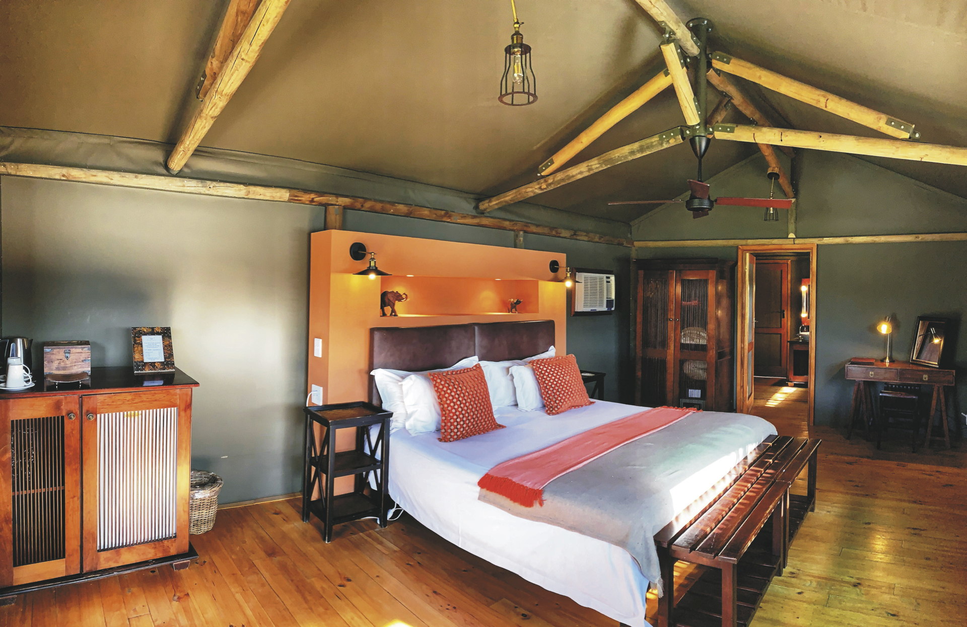 Die gemütliche, reetgedeckte Hauptlodge liegt direkt am Damm und bietet von der großen, überdachten Terrasse einen schönen Blick. Außerdem finden Sie hier eine gemütliche Lounge mit Kamin und einen kleinen Shop. Etwas abseits liegt der Spa, wo Sie eine Behandlung auf der Terrasse erhalten können. Der Pool und die Sonnenterrasse befinden sich zwischen den Superior-Zelten direkt am Damm. Die auf der Lodge lebenden Löwen wurden in Gefangenschaft geboren und können in der Wildnis nicht überleben, da sie nie gelernt haben zu jagen. Es handelt sich dennoch um wilde Löwen, die vom Menschen nicht angefasst werden dürfen, auch nicht von den Wildhütern. Buffelsdrift wurde auch die Heimat von drei verwaisten Elefantenbabys, die mittlerweile ausgewachsen sind, aber ebenfalls nicht mehr ausgewildert werden können, sie kennen ihre Feinde nicht und sind nicht sozialverträglich mit anderen Elefanten. Die Lodge bietet viele optionale Aktivitäten an: Pirschfahrt, Nachtpirschfahrt, Begegnung mit den Elefanten, Geparden-Tracking, Besuch zur Fütterungszeit im Löwen-Schutzgebiet, geführte Wanderung zu den Felsmalereien, Erdmännchen-Safari.