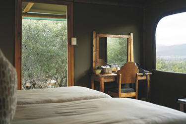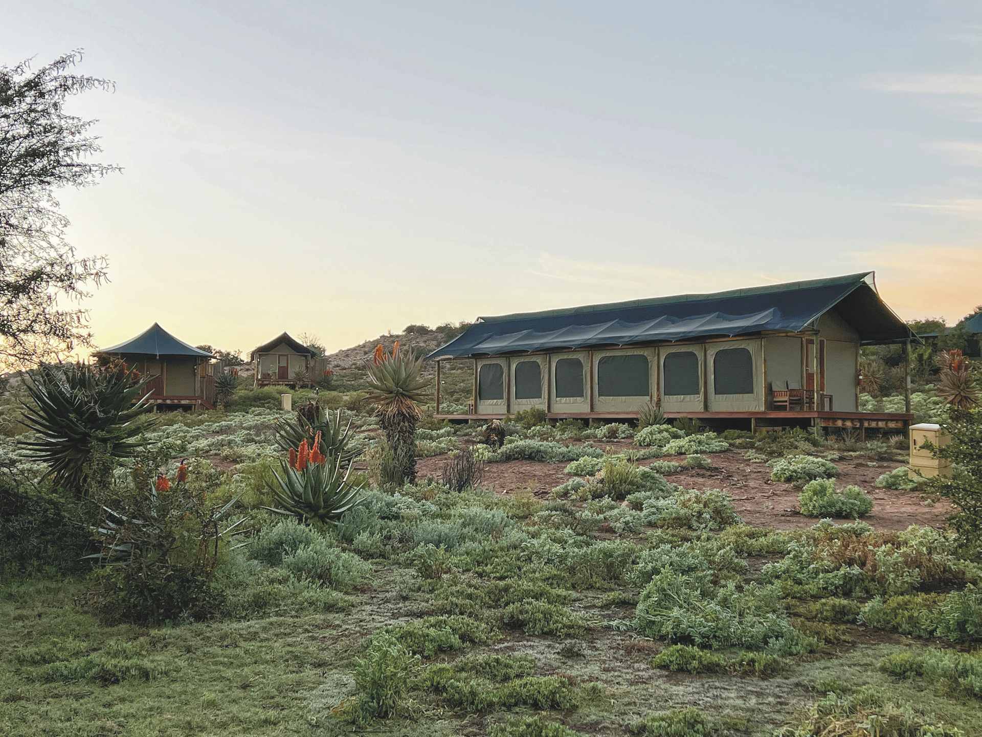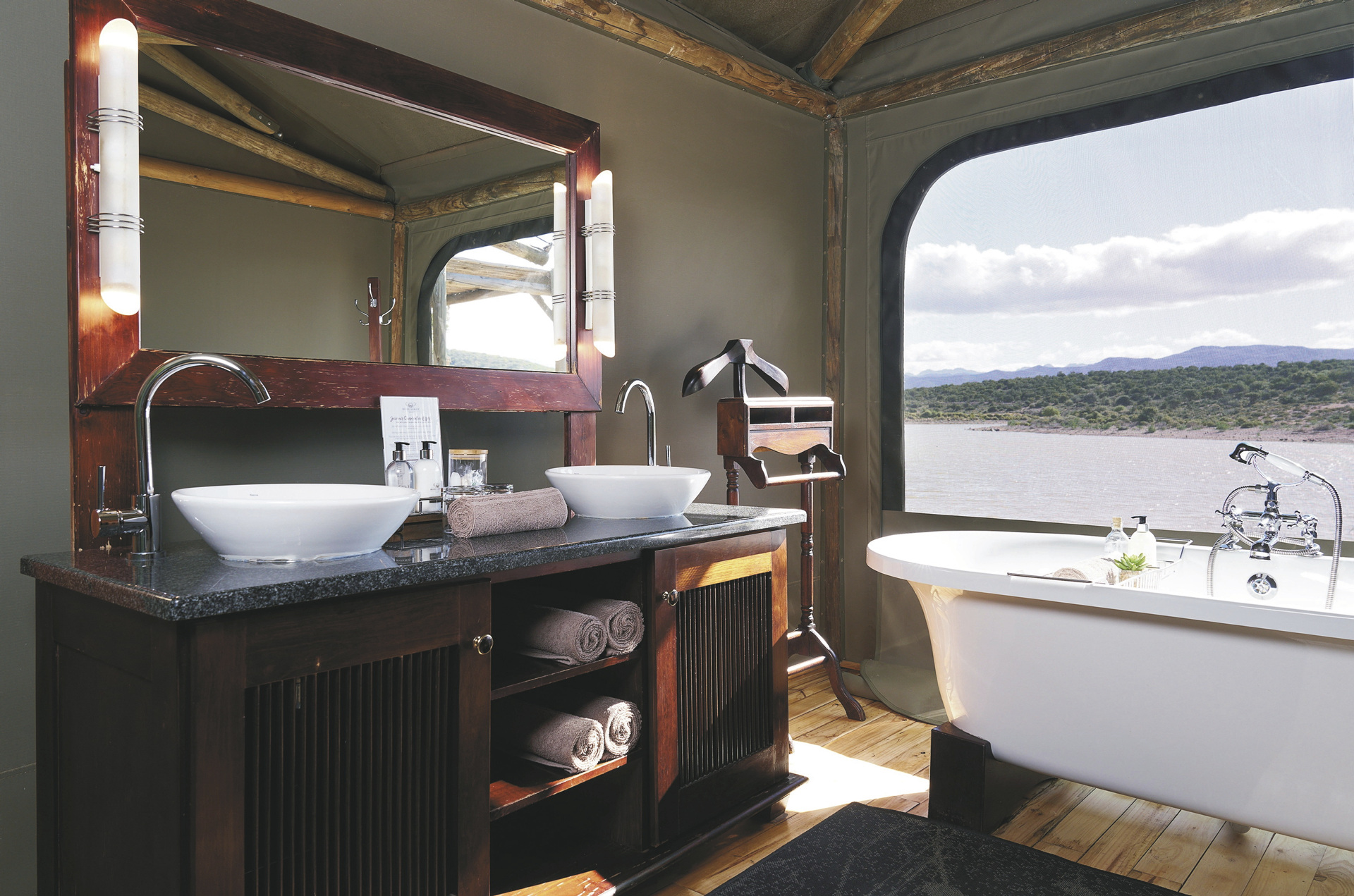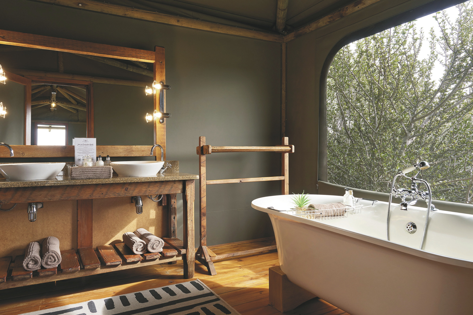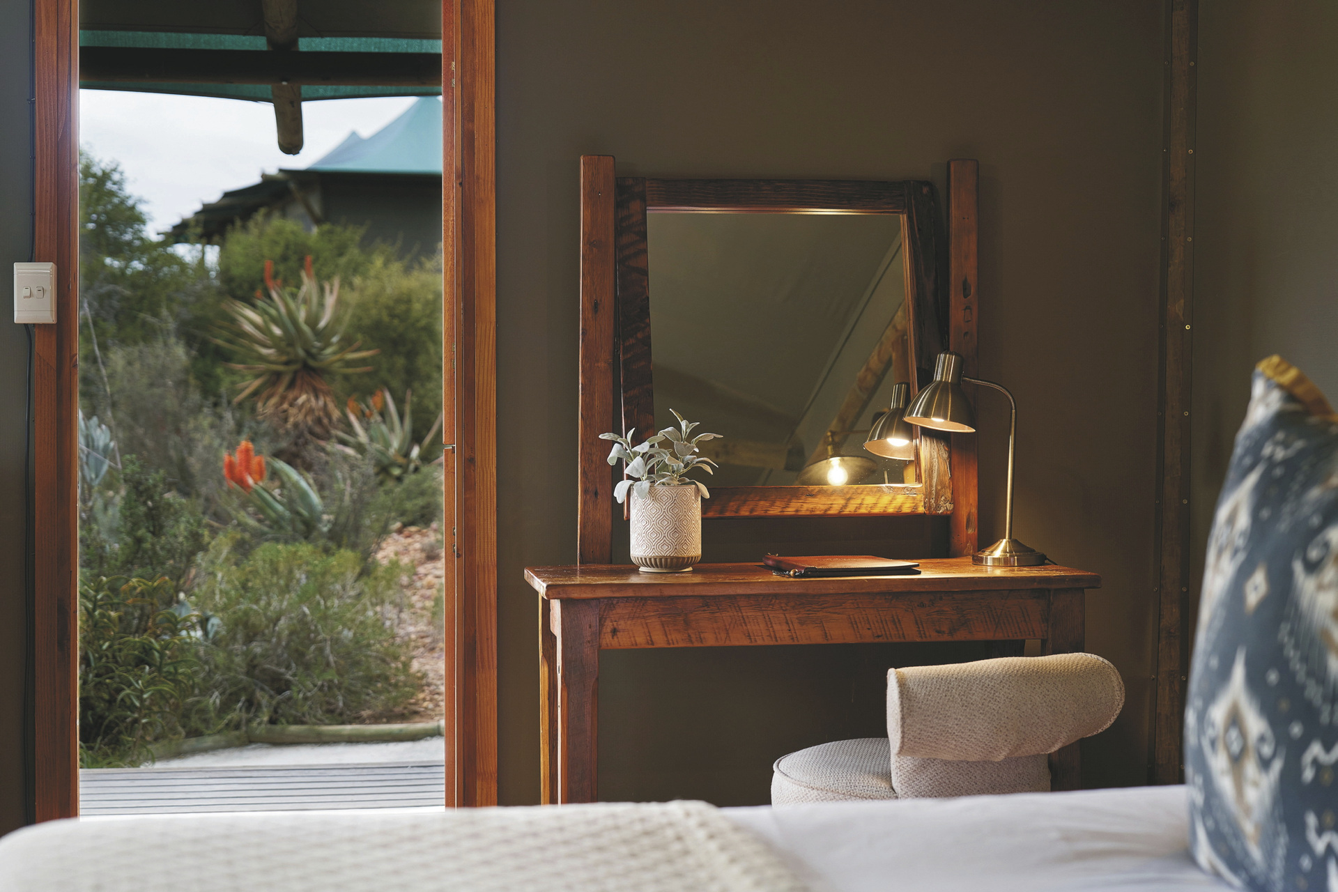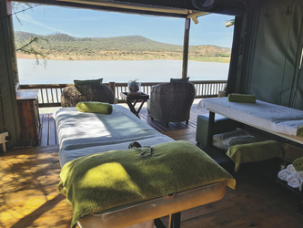 Die gemütliche, reetgedeckte Hauptlodge liegt direkt am Damm und bietet von der großen, überdachten Terrasse einen schönen Blick. Außerdem finden Sie hier eine gemütliche Lounge mit Kamin und einen kleinen Shop. Etwas abseits liegt der Spa, wo Sie eine Behandlung auf der Terrasse erhalten können. Der Pool und die Sonnenterrasse befinden sich zwischen den Superior-Zelten direkt am Damm. Die auf der Lodge lebenden Löwen wurden in Gefangenschaft geboren und können in der Wildnis nicht überleben, da sie nie gelernt haben zu jagen. Es handelt sich dennoch um wilde Löwen, die vom Menschen nicht angefasst werden dürfen, auch nicht von den Wildhütern. Buffelsdrift wurde auch die Heimat von drei verwaisten Elefantenbabys, die mittlerweile ausgewachsen sind, aber ebenfalls nicht mehr ausgewildert werden können, sie kennen ihre Feinde nicht und sind nicht sozialverträglich mit anderen Elefanten. Die Lodge bietet viele optionale Aktivitäten an: Pirschfahrt, Nachtpirschfahrt, Begegnung mit den Elefanten, Geparden-Tracking, Besuch zur Fütterungszeit im Löwen-Schutzgebiet, geführte Wanderung zu den Felsmalereien, Erdmännchen-Safari.