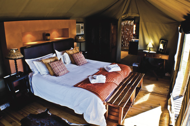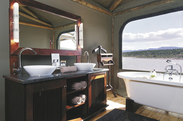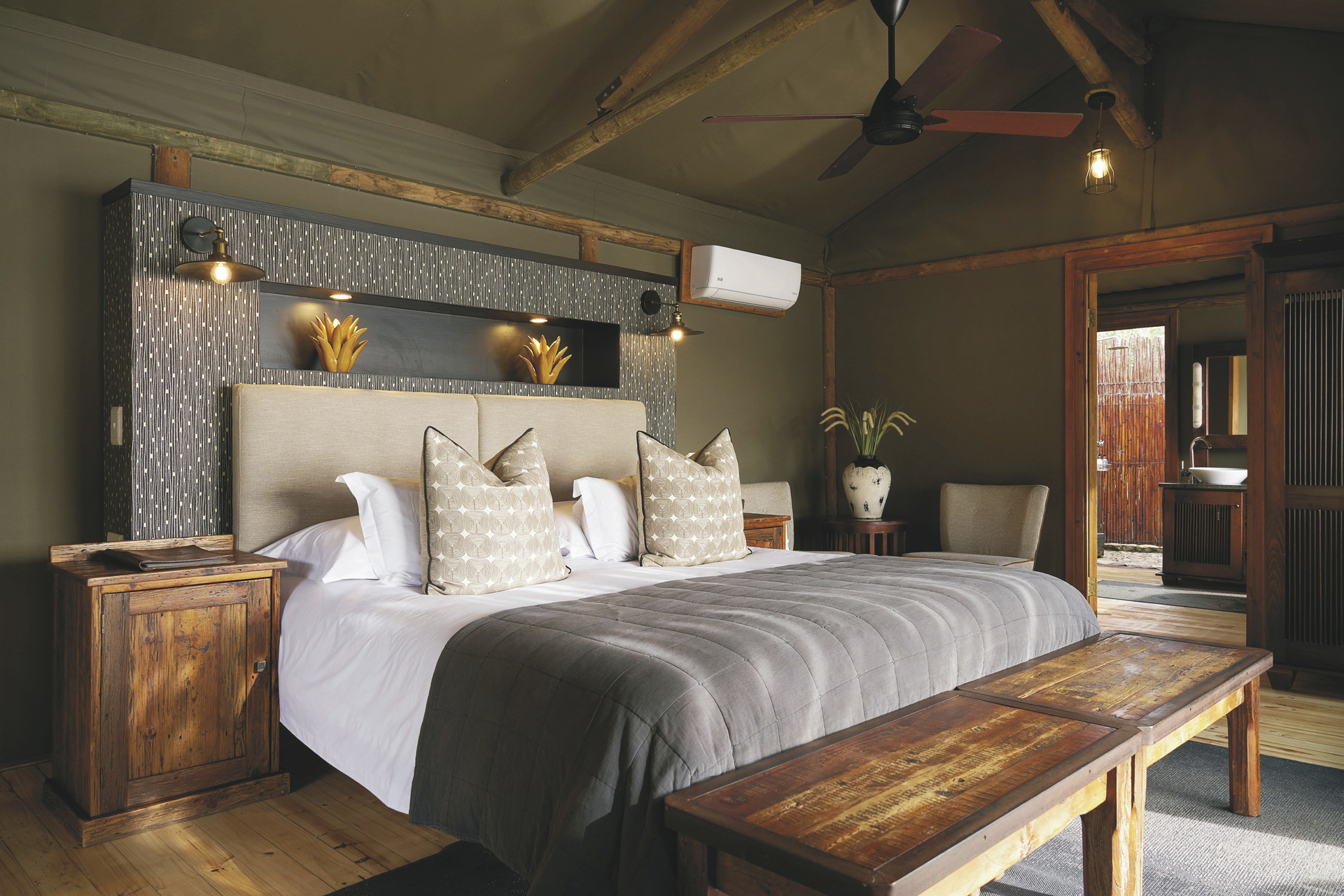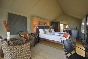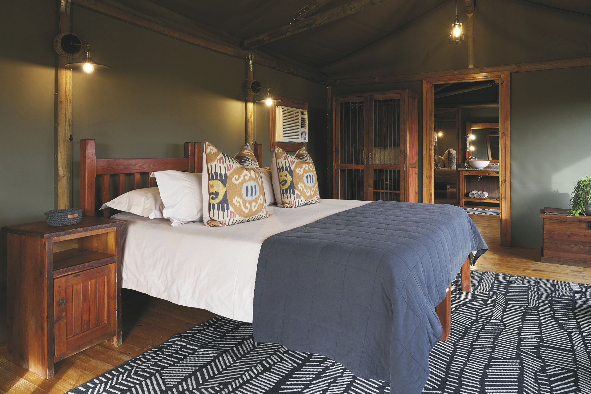 Verstreut am Seeufer befinden sich 34 luxuriöse Safarizelte, die jeweils mit einem Bad mit Außendusche ausgestattet sind. Außerdem finden Sie einen Fön, Telefon, Klimaanlage, Minibar, Safe sowie einen Tee-/Kaffeezubereiter im Zelt vor. Die 9 Superior-Zelte liegen direkt am Wasser und haben eine kleine Terrasse. Es gibt 5 Familienzelte, in denen sich zwei Schlafzimmer ein Badezimmer teilen.