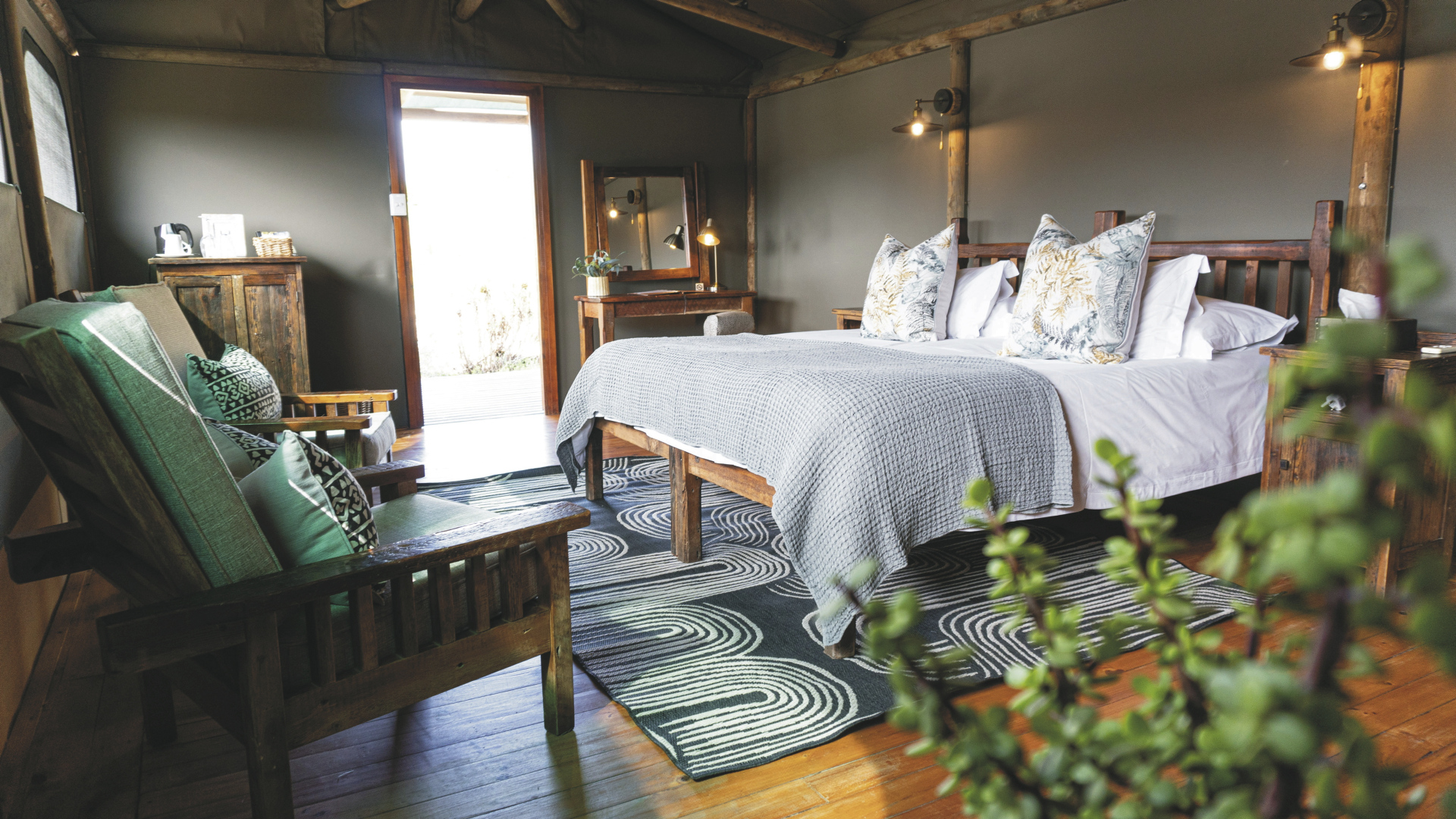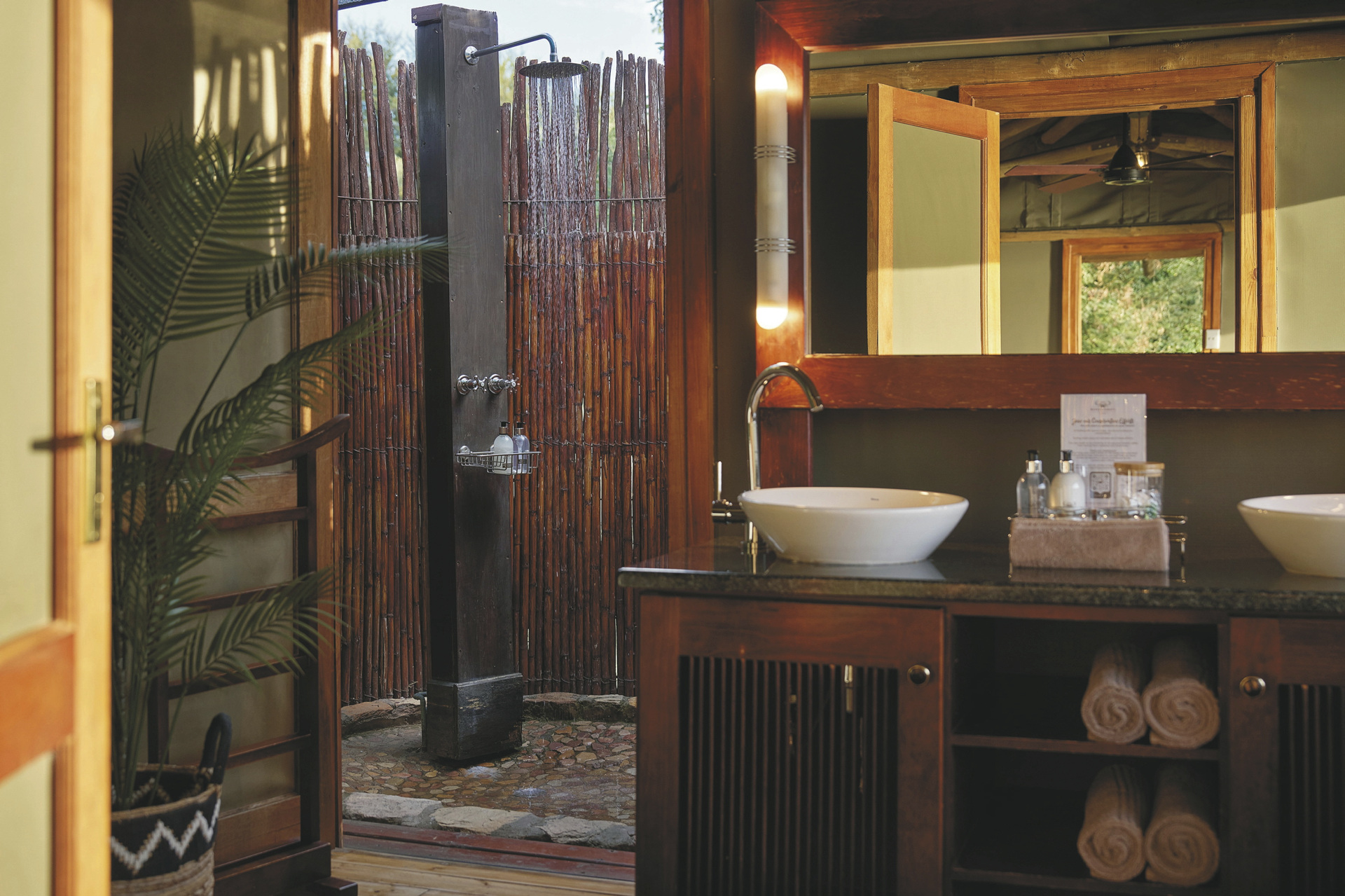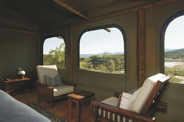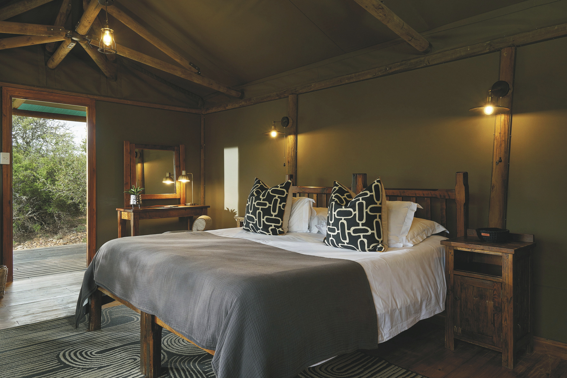 Verstreut am Seeufer befinden sich 34 luxuriöse Safarizelte, die jeweils mit einem Bad mit Außendusche ausgestattet sind. Außerdem finden Sie einen Fön, Telefon, Klimaanlage, Minibar, Safe sowie einen Tee-/Kaffeezubereiter im Zelt vor. Die 9 Superior-Zelte liegen direkt am Wasser und haben eine kleine Terrasse. Es gibt 5 Familienzelte, in denen sich zwei Schlafzimmer ein Badezimmer teilen.
