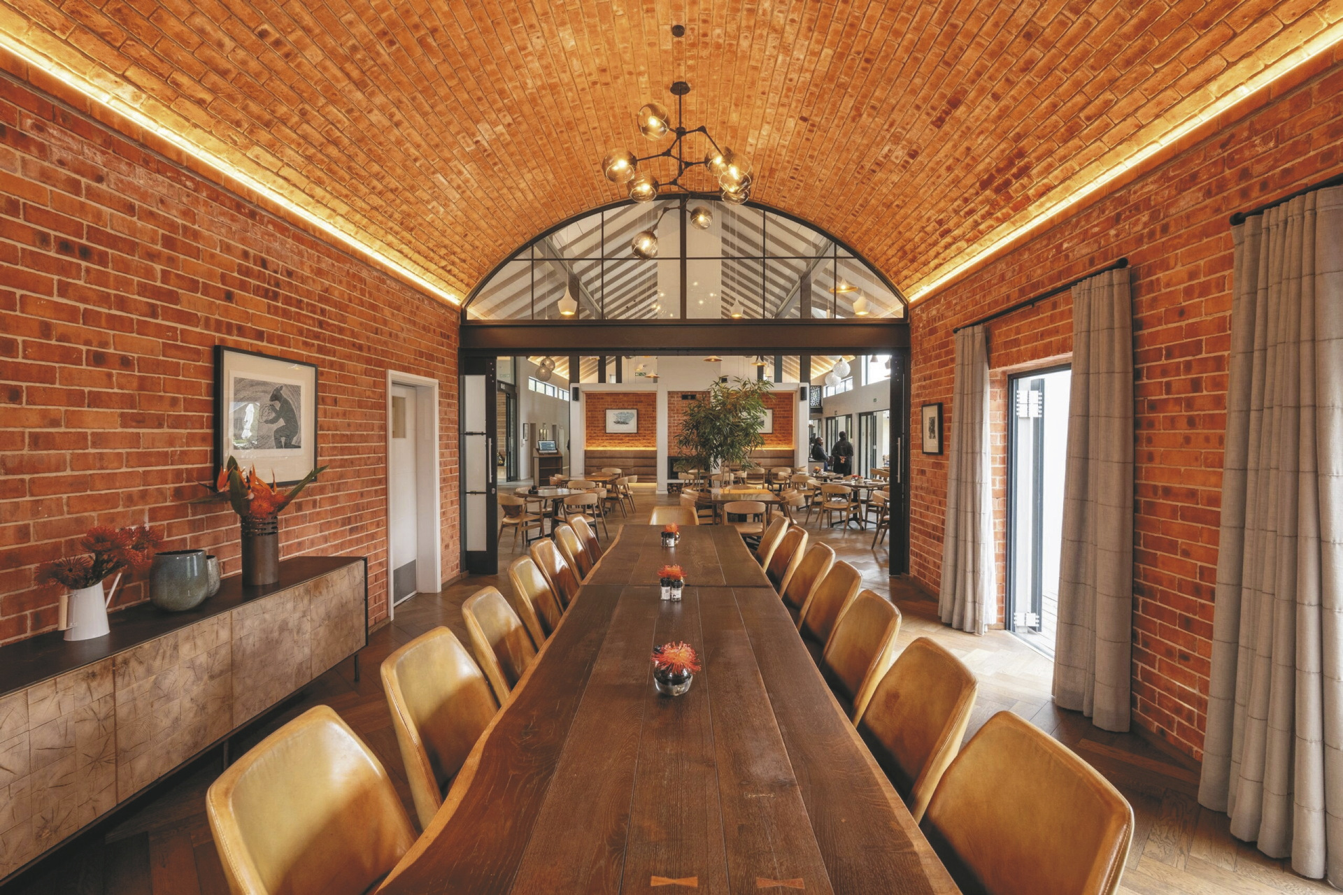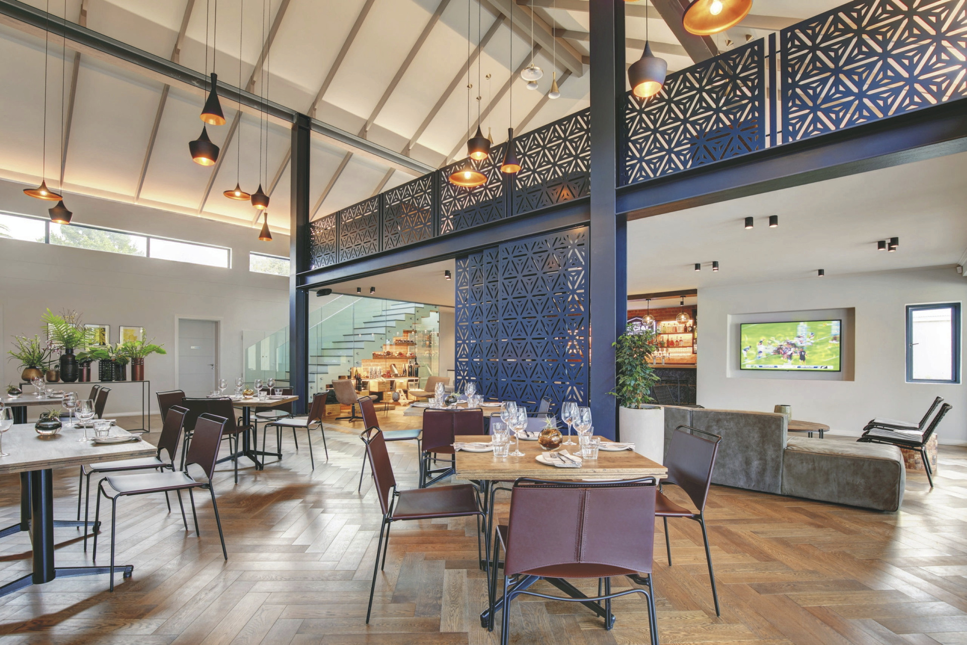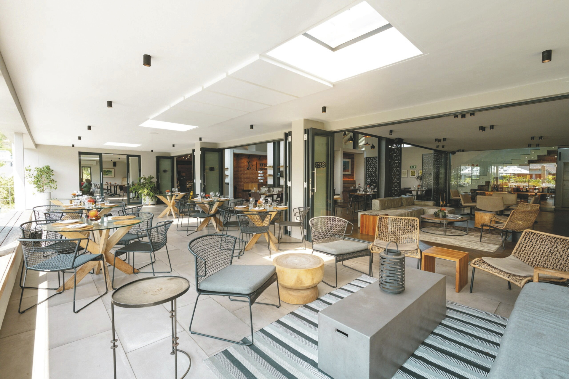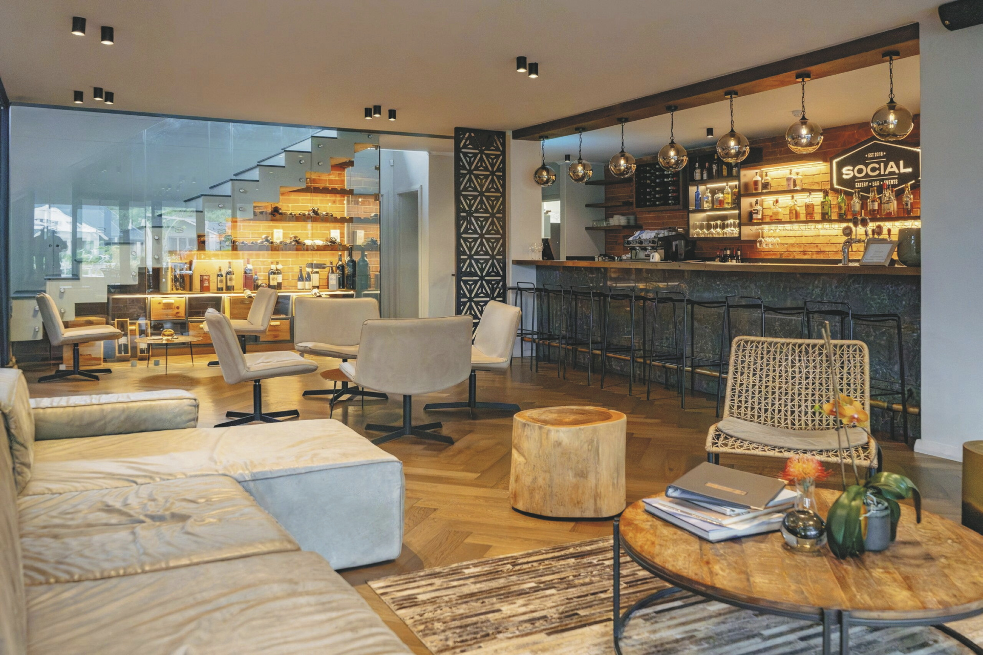 Das moderne Country Estate liegt in einer schönen, weitläufigen 3 Hektar großen Gartenanlage; bunte Blumen, Fynbos und Lavendel gemischt mit Gräser bilden das ganze Jahr hindurch einen blühenden Teppich. Die Suiten gruppieren sich um die 2 Pools und die Sonnenterrassen. Im Hauptbereich dominieren klare Linien, warmes Holz und große Fensterfronten, hier finden Sie das weitläufige Restaurant und den Barbereich, bei gutem Wetter können Sie draußen auf der Terrasse sitzen. Erlesene Weine, nicht nur aus Südafrika, stehen im Weinkeller zur Auswahl, dieser Bereich steht auch für ein privates, romantisches Abendessen zu besonderen Anlässen auf Anfrage zur Verfügung. Im Außenbereich warten ein Boule-Platz und zwei Padel-Plätze darauf bespielt zu werden. Wer die Umgebung gerne aktiv erkunden möchte sollte dem hauseigenen Fahrrad-Verleih einen Besuch abstatten.