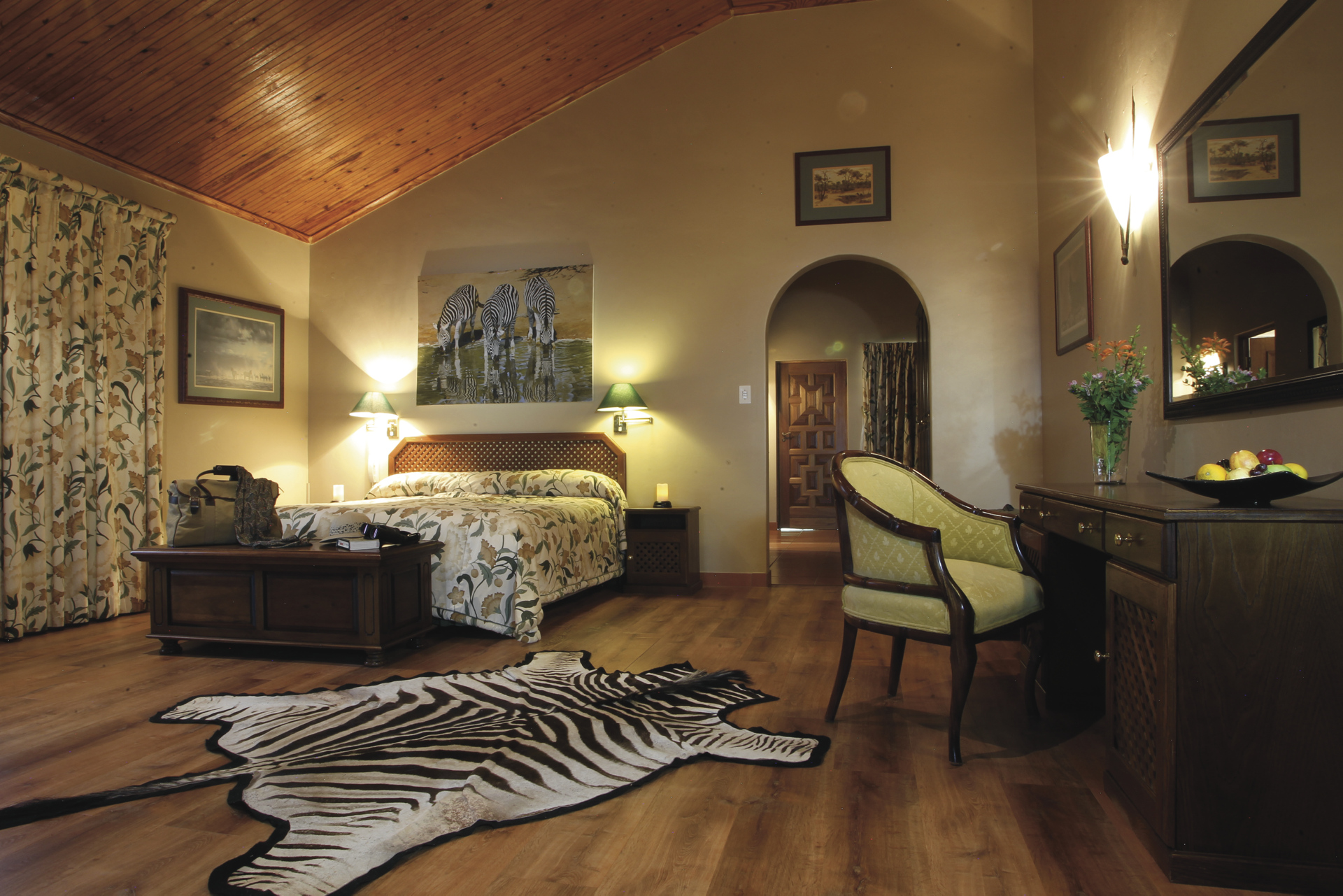 Die 7 eleganten, individuell eingerichteten und geräumigen Suiten liegen im Garten etwas abseits des Haupthaus und bieten bereits beim Aufwachen einen atemberaubenden Blick auf das tiefer gelegene Wildreservat. Neben einem luxuriösen Badezimmer sind die Suiten ausgestattet mit einem Fön, Safe, Minibar, Tee-/Kaffeezubereiter sowie kostenfreiem WLAN, auf weitere Technik wurde bewusst verzichten, einen Fernseher finden Sie im Haupthaus. 3 Treppenstufen führen Sie vom Schlafzimmer in den Loungebereich und dann weiter auf eine große überdachte Terrasse. Die Honeymoon-Suite überrascht mit einer unvergleichlichen Aussicht, einem Marmorbad und einer separaten Lounge, gehalten in kräftigen Erdfarben.Für Familien mit größeren Kindern gibt es es die Möglichkeit zwei nebeneinander liegenden Suiten zu buchen, über den Balkon sind diese miteinander verbunden. Kleinere Kinder können in einem zusätzlichen Bett in der Suite der Eltern komfortabel untergebracht werden.
