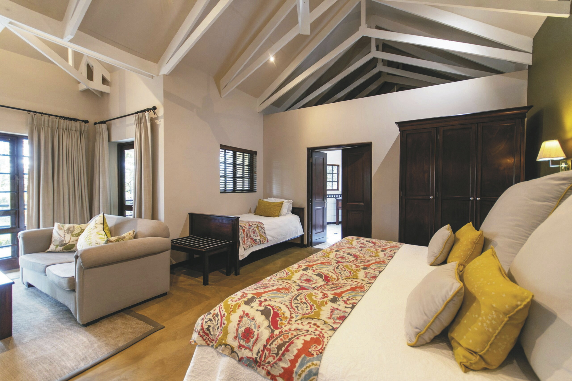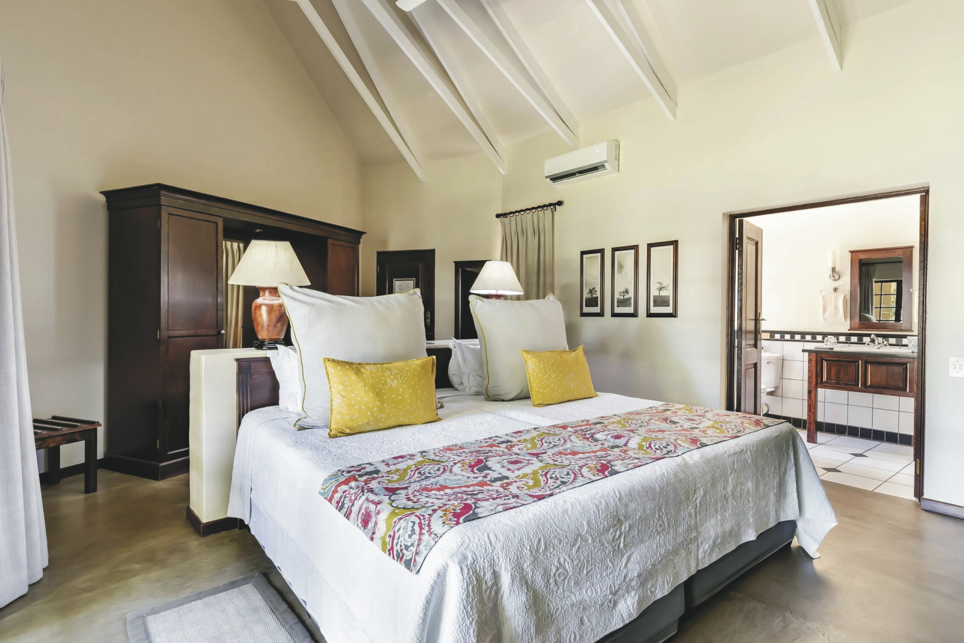 Die 31 großzügigen Zimmer liegen im weitläufigen Garten verstreut. Jedes Zimmer verfügt über ein Bad mit Innen- und Außendusche, außerdem Klimaanlage/Heizung, TV, Safe, Fön, Ventilator, Kühlschrank, Kaffee-/Teezubereiter und eine Terrasse. Außerdem gibt es Familienzimmer mit 3 Betten, einer Schlafcouch und zusätzlicher Badewanne, jedoch ohne Außendusche.