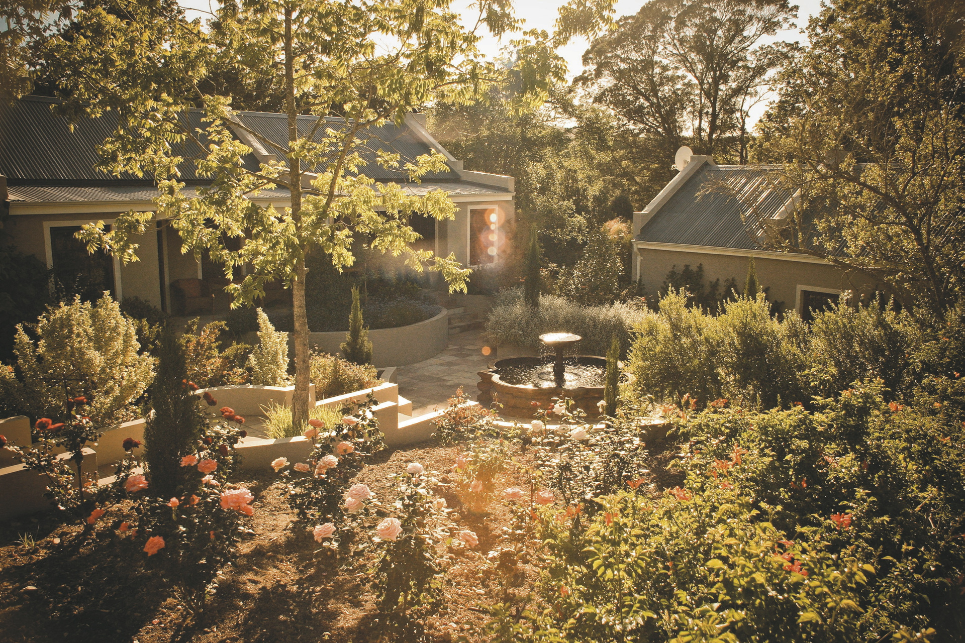 Die Unterkünfte bewahren das viktorianische Flair des Herrenhauses, sind aber nicht überladen und strahlen luxuriösen Stil und Eleganz aus. Die 8 Luxus-Zimmer liegen im Rosengarten verteilt und sind mit antiken Möbeln ausgestattet. Jedes verfügen über ein modernes Bad im viktorianischen Stil; Fön, Terrasse oder Balkon, Lounge, Kamin, TV, Tee-/Kaffeezubereiter, kostenloses WLAN, Safe, Klimaanlage/Heizung und Minibar. Die Familiensuite verfügt über ein zweites Schlafzimmer mit zwei Etagenbetten für max. 4 Kinder. Das Familien-Cottage ist für kleinere Familien mit max. 2 Kinder geeignet, diese schlafen auf der offenen Empore. Die romantische Honeymoon-Suite liegt versteckt am Rand eines kleinen üppigen Waldes und bietet mit einem handgeschnitzten Himmelbett und einem großen Kamin höchsten Luxus und Komfort.