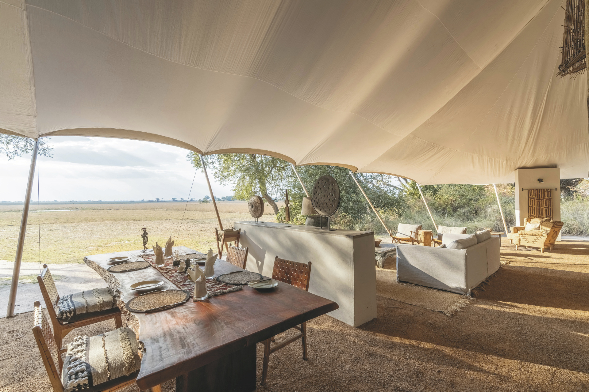 Die sogenannten „Vogelnester“ sind luxuriöse Zeltunterkünfte, die vier Meter über dem Boden thronen und einen weiten Blick über die Busanga Plains bieten. Jedes Nest verfügt über ein eigenes Bad mit Dusche, Einzelwaschbecken und separater Toilette sowie Moskitonetzen und Ventilator. Die Ausstattung ist schlicht und funktional, mit liebevollen Details wie gefiltertem Kaffee und Tee sowie solarbetriebener Stromversorgung. Ein Nest ist barrierefrei und mit einem elektrischen Lift ausgestattet