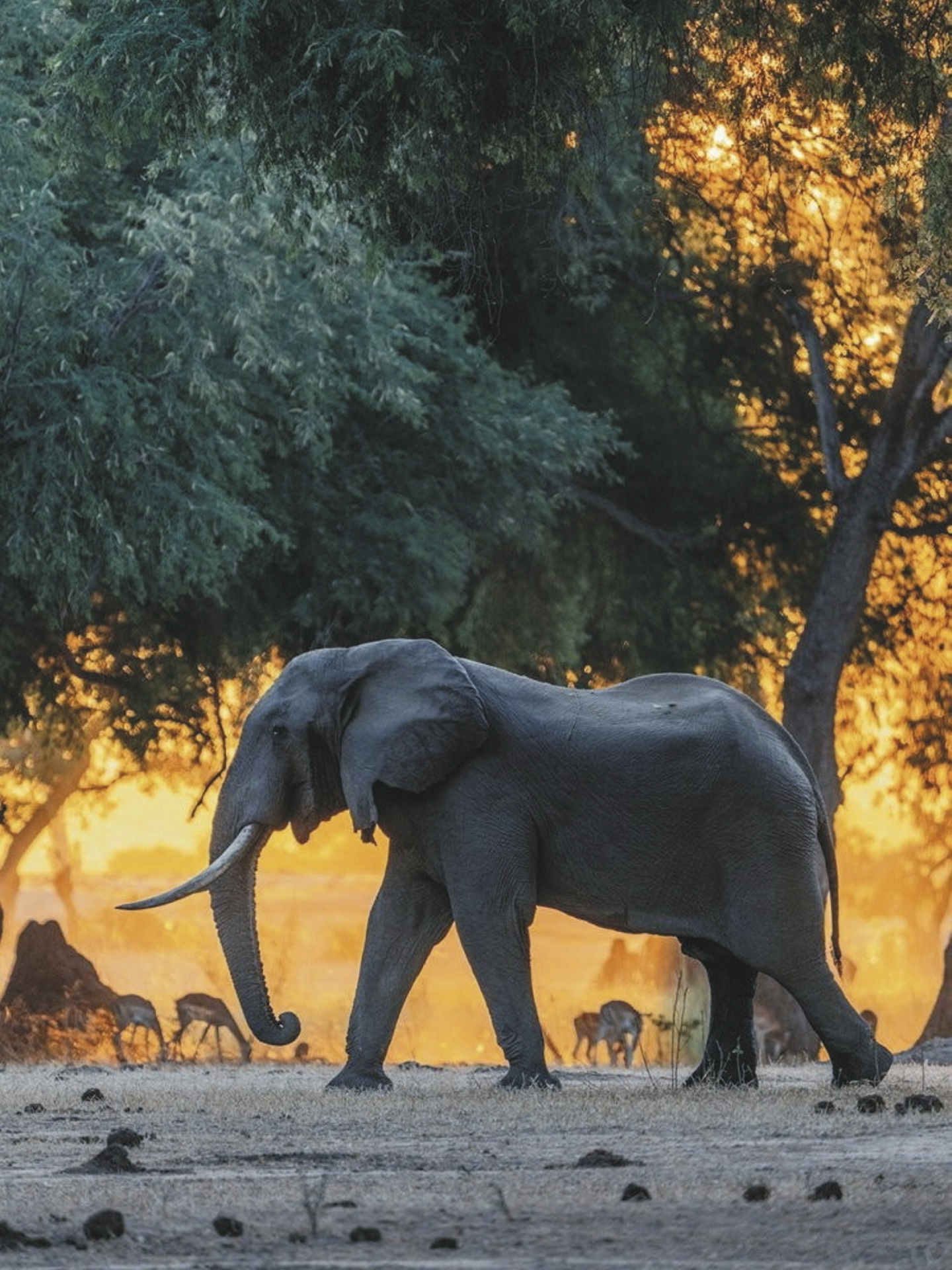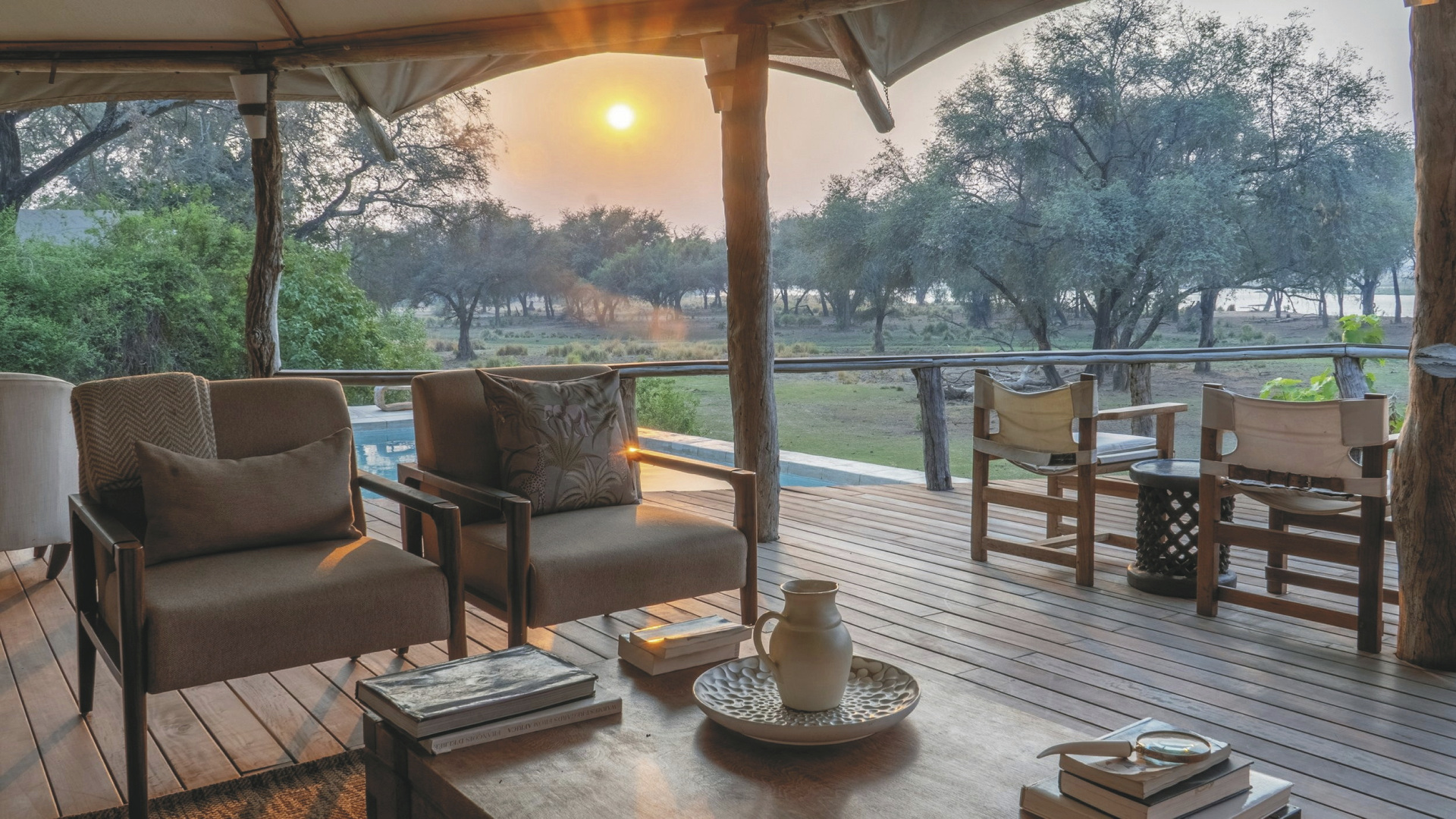 Die Hauptbereiche des Camps sind offen gestaltet und bieten einen weiten Blick auf den Fluss und die vorbeiziehenden Elefantenherden. Eine elegante Lounge, ein Essbereich unter freiem Himmel und ein Pool laden zum Entspannen ein. Besonders hervorzuheben ist das stimmungsvolle Feuerdeck, das abends zum Treffpunkt unter dem Sternenhimmel wird. Die Küche verwöhnt Sie mit frischen, saisonalen Gerichten, die in stilvollem Ambiente serviert werden.Eingeschlossene Leistungen: Pirschfahrten, Boots- und Kanufahrten, Buschwanderungen.