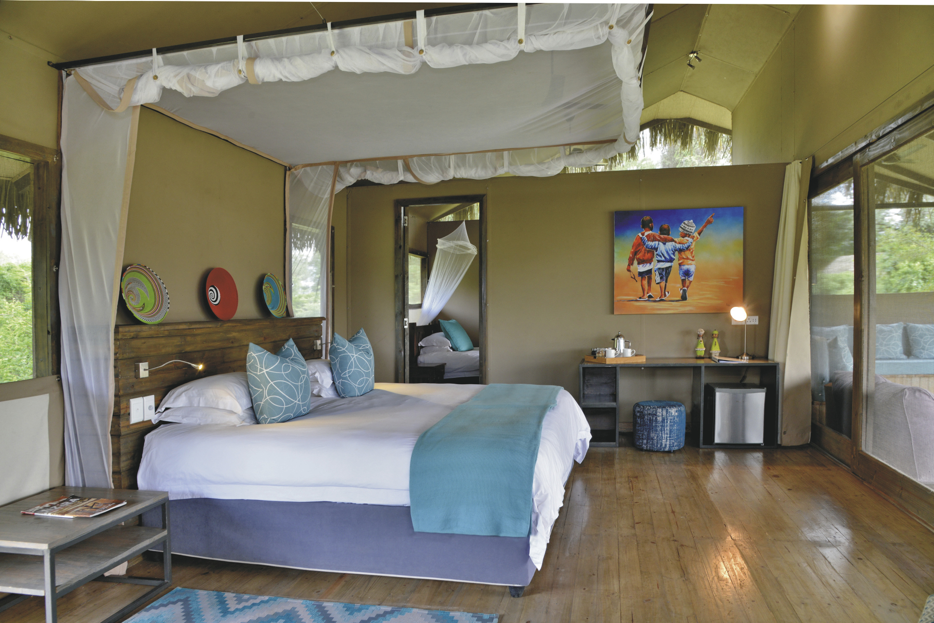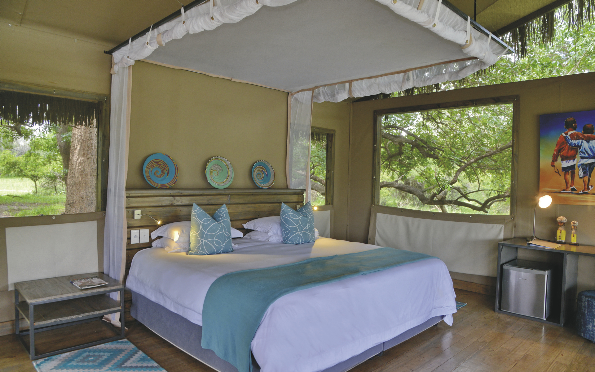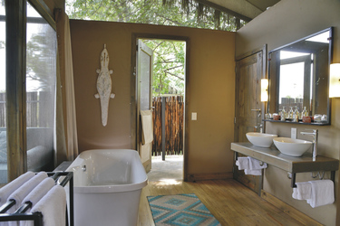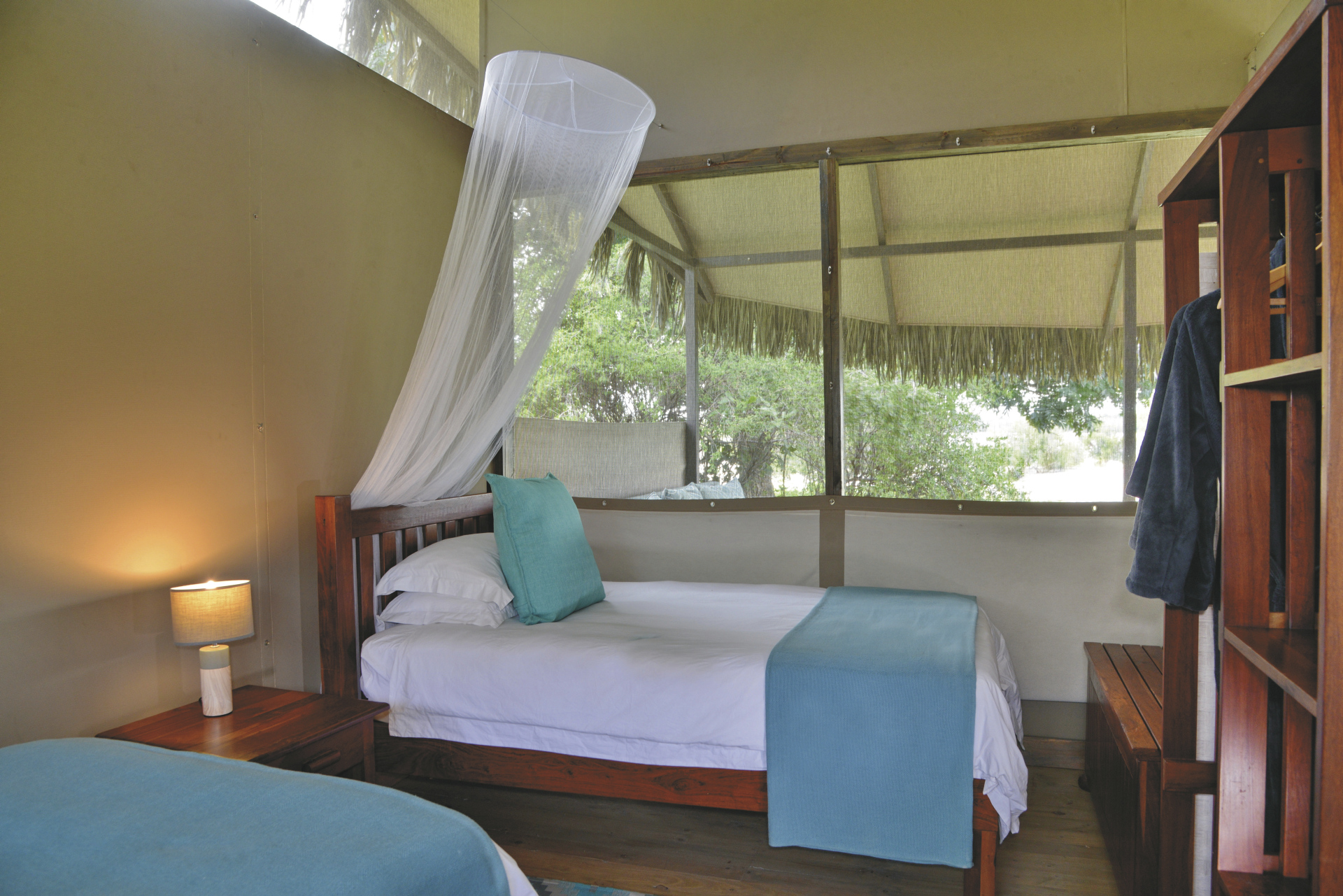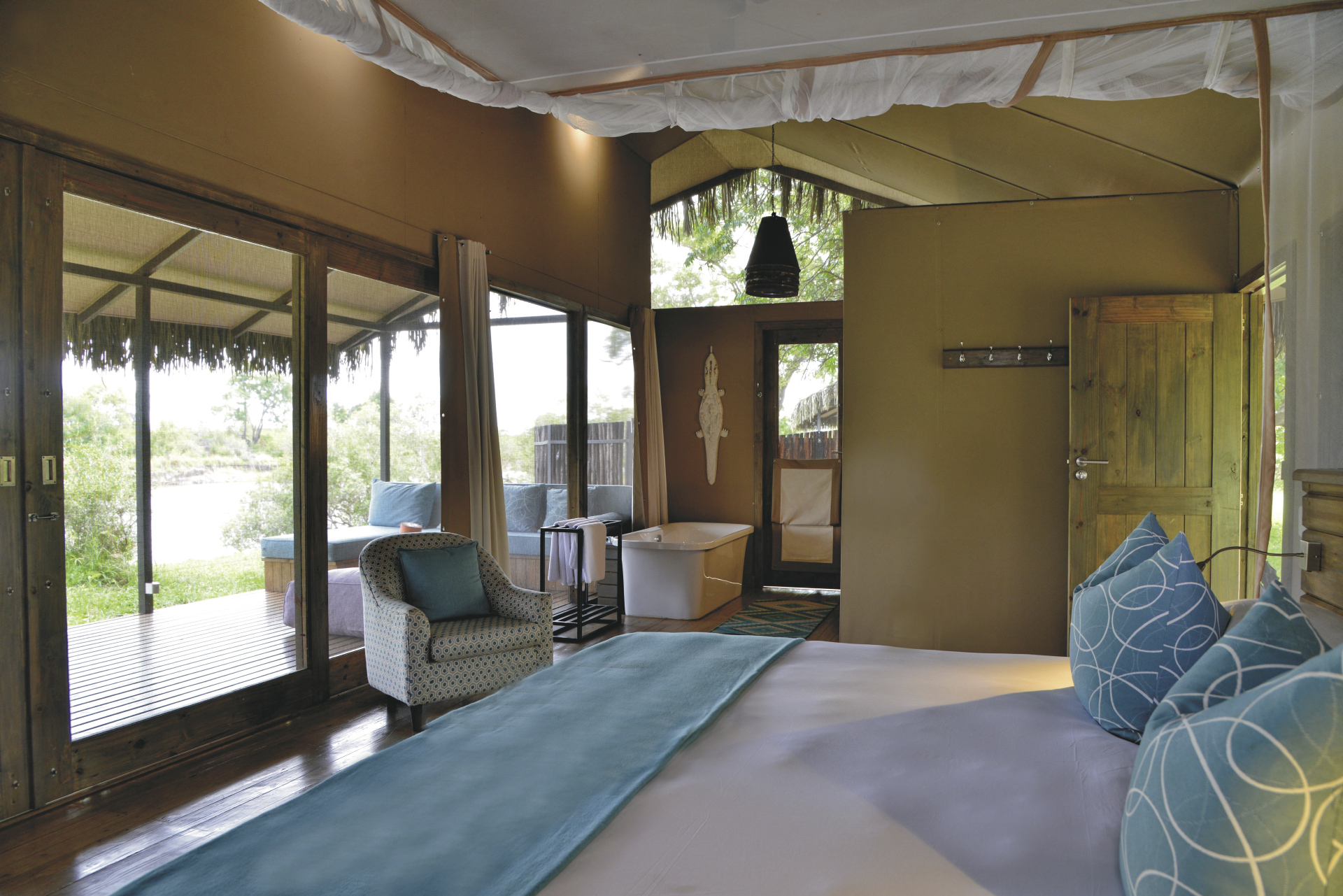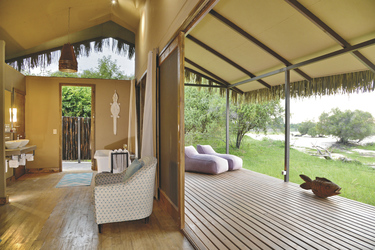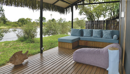 Die 6 River View-Suiten sind entweder mit einem Super-King-Size-Bett oder zwei Einzelbetten mit Moskitonetz ausgestattet. Das offene Design der Suite umfasst ein Badezimmer mit einer freistehenden Badewanne und einer privaten Außendusche. Die Terrasse mit einer Tagesliege und einem Sitzbereich bietet einen herrlichen Blick auf den Sambesi. Außerdem gibt es 2 Familien River View-Suiten.