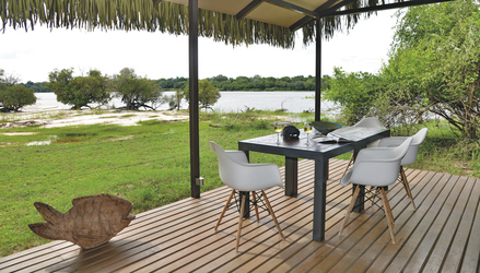 Die Lodge ist im Schatten majestätischer Auenbäume erbaut und fügt sich harmonisch in die Natur ein. Vom Hauptgebäude der Terrasse hat man einen fantastischen Blick auf den dahinfließenden Zambezi Fluss. Genießen Sie atemberaubende Sonnenuntergänge, Cocktails und entspannte Stunden am großen Pool mit Blick auf den Fluss.Eingeschlossene Aktivitäten: Unternehmen Sie Bootsfahrten, Kanufahrten und Buschwanderungen im Zambezi Nationalpark. Ebenso werden Pirschfahrten im Nationalpark angeboten und ein Transfer zu den Victoria Wasserfällen (exkl. Eintritt, derzeit USD 50). Ein Highlight bietet auch das "Fun Fishing".