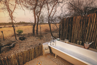 The Hide bietet Platz für bis zu 20 Gäste in 10 komfortablen und geräumigen Safarizelten. Sie bieten verschiedene Ausstattungen, darunter Innen- und/oder Außenbadewannen und -duschen. Für den Sommer sind sie mit Ventilatoren gekühlt und für die kühleren Wintermonate stehen extra warme Decken und Wärmflaschen zur Verfügung. Jedes Zelt verfügt über eine private Veranda, von der aus Sie das Kommen und Gehen zahlreicher Wildtiere am Wasserloch beobachten können.Wer etwas mehr Privatsphäre und Exklusivität möchte, kann den "Private Hide" buchen und für Familie ist "Tom's Little Hide" optimal.