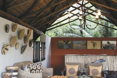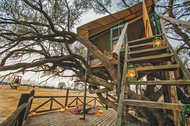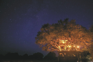 Das Herzstück der Lodge ist das markante „A“-förmige Gebäude, das den Speiseraum, eine Sonnenlounge im Erdgeschoss und eine große, gemütliche Lounge mit Aussichtsplattform im Obergeschoss beherbergt. Die großzügigen Lodge-Bereiche sind geschmackvoll eingerichtet und mit massiven Möbeln aus Zimbabwe-Teakholz ausgestattet. Der Pool bietet eine optimale Abkühlung an heißen Tagen. Ein besonderes Highlight ist der "Hide". Die Gäste können den unterirdischen Gang entlang bis zum wildtierreichen Wasserloch laufen und die Tierwelt aus einem ganz anderen Blickwinkel betrachten.Eingeschlossene Aktivitäten: Pirschfahrten und Buschwanderungen sowie eine Übernachtung im "Dove’s Nest Treehouse" (auf Anfrage).