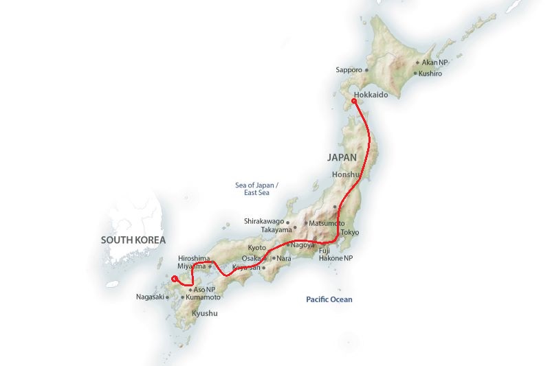 Die ultimative Japan-Gruppenreise: Von den Vulkanlandschaften Hokkaidos über die Kaiserstadt Kyoto bis zu den heißen Quellen auf Kyushu. Unterwegs erleben Sie Sendai, Tokyo, Hiroshima und Fukuoka – ein einmaliger Überblick über alle Facetten des Landes. Ideal für Reisende, die Japan von Nord bis Süd kennenlernen möchten.