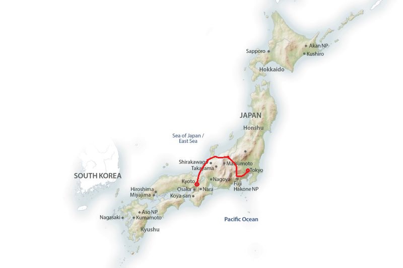 Tokyo • Lake Kawaguchi • Takayama • Kanazawa • Kyoto • Himeji • Osaka