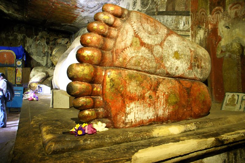 Nur einen Katzensprung von Sigiriya entfernt liegt Dambulla – ein Ort voller Ruhe, Farben und Geschichte. Schon von weitem grüßt die riesige goldene Buddha-Statue am Eingang, doch das wahre Highlight liegt weiter oben: fünf kunstvoll verzierte Höhlen, voll mit über 150 Buddha-Statuen, Wand- und Deckenmalereien. Die Tempel wurden über viele Jahrhunderte hinweg erweitert und bemalt – und das sieht man: jede Figur, jede Szene erzählt eine andere spirituelle Geschichte. Wer sich Zeit nimmt, entdeckt in den feinen Details wahre Meisterwerke der buddhistischen Kunst. Und auch der Ausblick vom Felsen auf die umliegende Landschaft lohnt den kurzen Aufstieg.