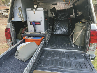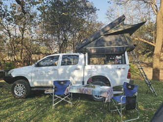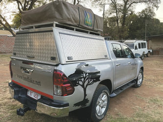 Toyota Hilux Double Cab o.ä.5 Türen, Servolenkung, 6-Gang-Schaltung mit Untersetzung, Differenzialspeere, Klimaanlage, elektrische Fensterheber, Zentralverriegelung, CD-Spieler, abschließbarer Laderaum, Erstehilfekasten, Grundausstattung an Werkzeug, Spaten, Axt, Wagenheber, Radschlüssel, Starthilfekabel, Abschleppseil, Kompressor, Feuerlöscher, 1 Ersatzrad, 85 l Dieseltank (Verbrauch ca. 14 l/100 km), GPS-System, Dachzelt und Campingausstattung.