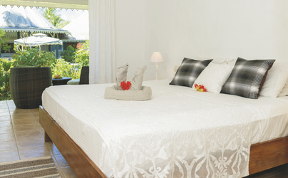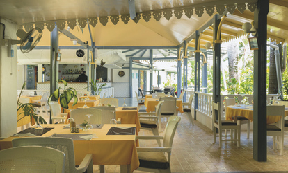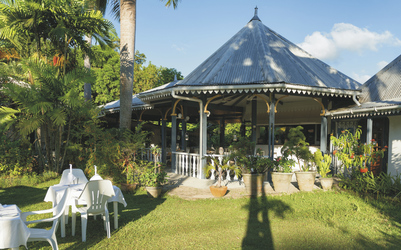 Ein charmantes Gästehaus an der Westküste der Hauptinsel, bekannt für sein Gourmet-Restaurant "Chez Plume", das gleichermaßen bei Urlaubern wie bei Einheimischen beliebt ist. Bitte beachten Sie, dass zwischen Gästehaus und Strand die Straße liegt.