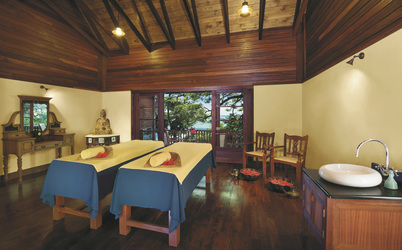 Ein himmlisches SPA-Erlebnis genießen Sie auf dem Hügel der Insel, wo Sie nur Mutter Natur hören, während Sie im Massage-Pavillon mit Außendusche und Badewanne entspannen.