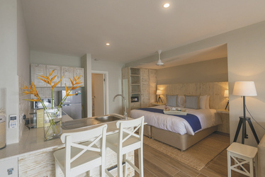 Mit einem Auge für modernes Design und dem Sinn für Althergebrachtes gestaltet, spiegeln die Apartments die farbenfrohe Kultur der Seychellen wider. Luxuriöse Betten, ein Bad mit Regendusche sowie eine voll ausgestattete Küche gehören dazu.