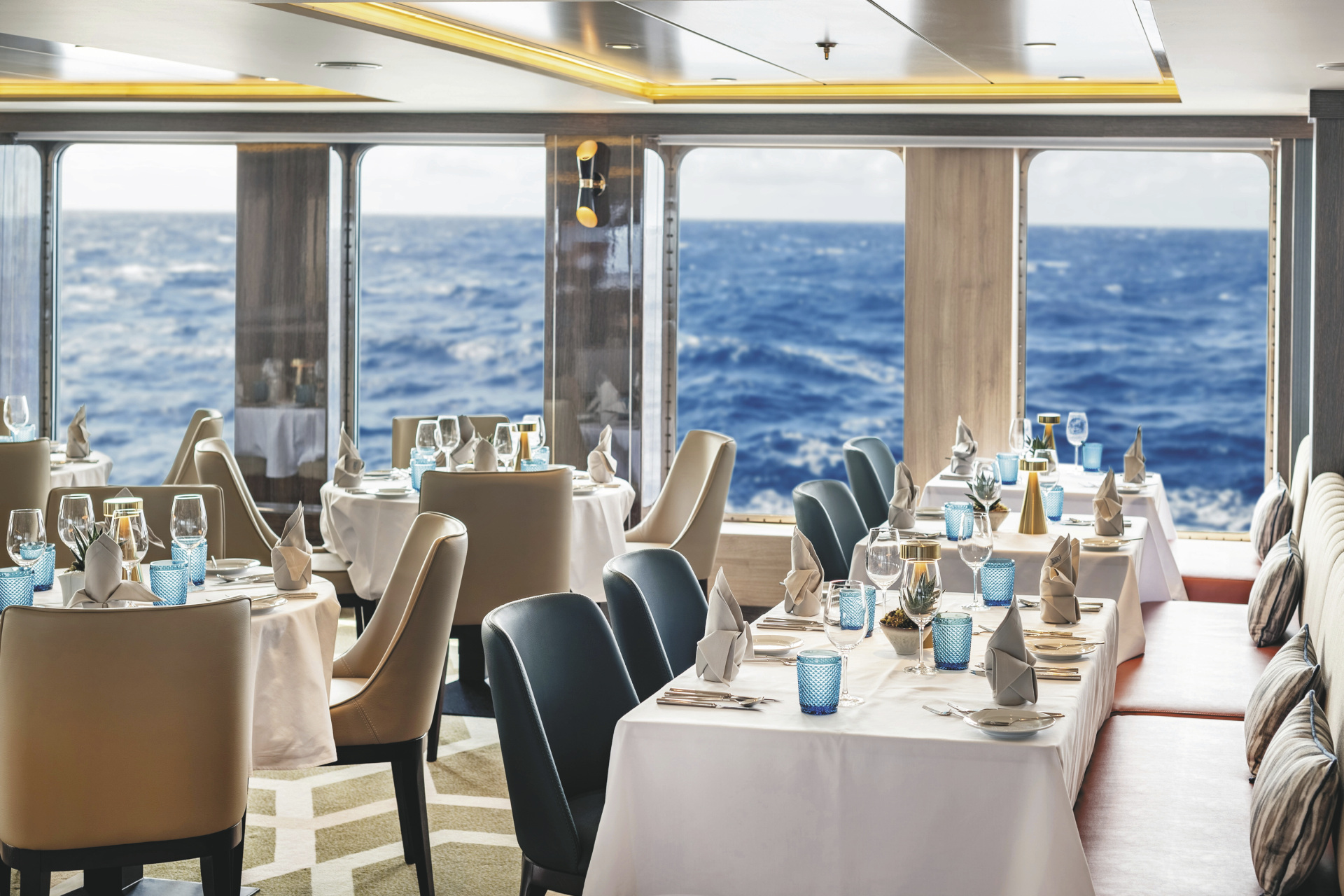 Auch kulinarisch lässt das Schiff keine Wünsche offen: Im „Mystic Restaurant“ auf Deck 4 werden mehrgängige Menüs und Buffets angeboten – bei gutem Wetter auch auf der großzügigen Al Fresco-Terrasse. Weitere gastronomische Highlights sind das Lido Café mit leichten Speisen am Pooldeck, die stilvolle Observation Lounge mit Panorama-Ausblicken sowie verschiedene Bars und eine Cigar Lounge. Für Entspannung und Bewegung sorgen ein Spa-Bereich mit Meerblick-Sauna, Massageraum und Ruheraum mit beheizten Liegen sowie ein gut ausgestattetes Fitnessstudio und eine Outdoor-Laufbahn. Die großzügigen Außendecks, darunter ein umlaufendes Deck mit beheizten Sitzen, laden zum Verweilen und Naturbeobachten ein. Besonders hervorzuheben ist das Science Center mit Vortragsraum, in dem Expeditionsexperten und Wissenschaftler spannende Einblicke in die jeweilige Region geben. Für Landgänge und Erkundungen stehen 18 Zodiacs bereit. Die *World Voyager* verbindet die entspannte Atmosphäre einer privaten Yacht mit dem Komfort eines Boutique-Hotels.