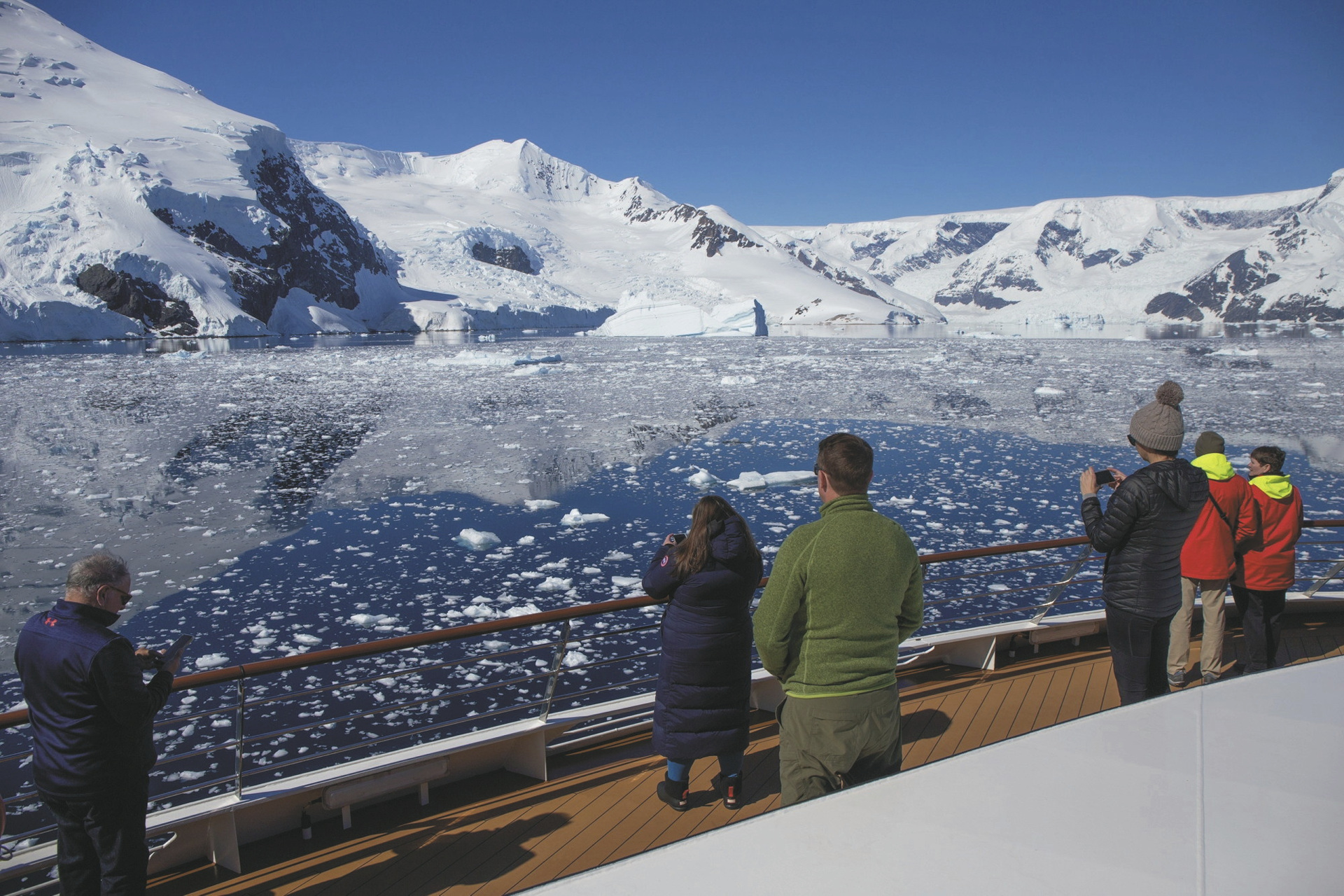 Die nächsten vier Tage kreuzen Sie durch die meist ruhigen Gewässer der Süd Shetland Inseln an der Westküste der antarktischen Halbinsel. Spektakuläre Eisberge, eisgefüllte Fjorde und die reiche Tierwelt mit Seevögeln, Pinguinen, Seelöwen und Walen sorgen täglich für immer neue Eindrücke. Mögliche Anlaufpunkte sind Livingston Island, Port Lockroy, Petermann Island, Paradise Bay, Cuverville und Deception Island. Tägliche Zodiac-Ausflüge, Landgänge, Vorträge und geselliges Beisammensein an Bord prägen den aktiv gestalteten Tagesablauf.