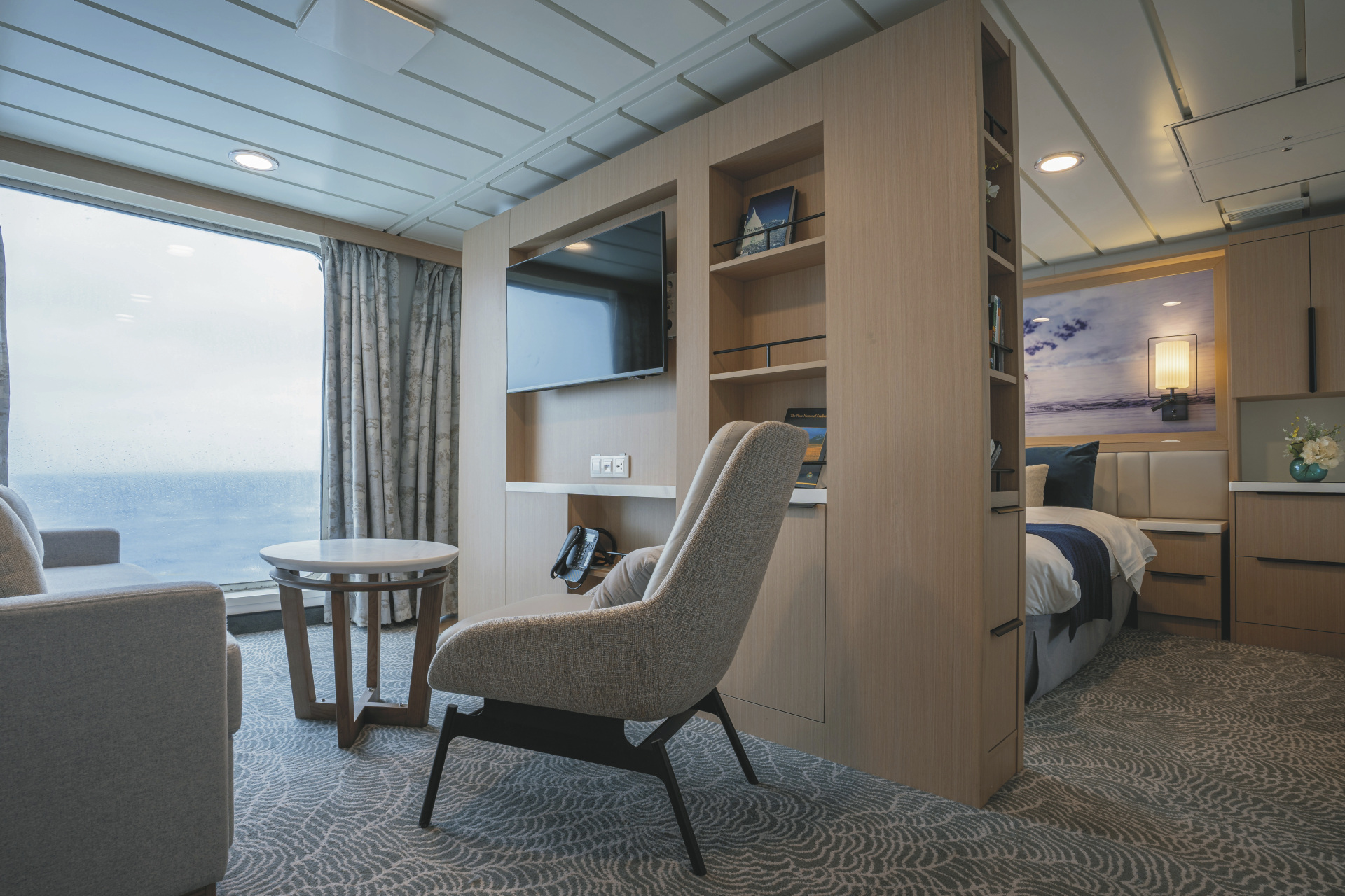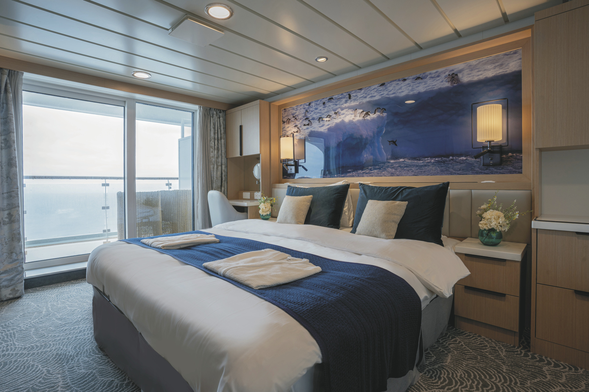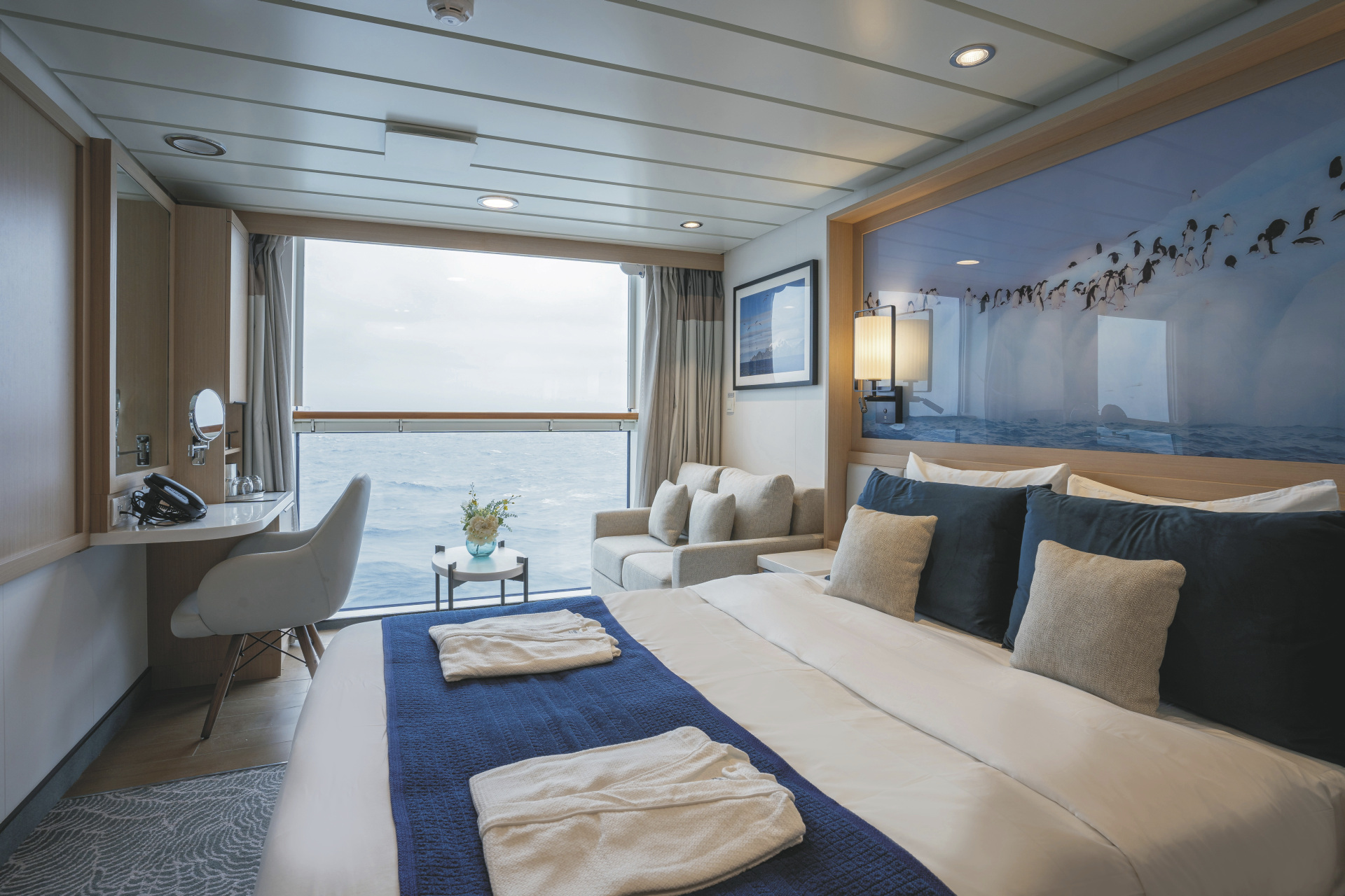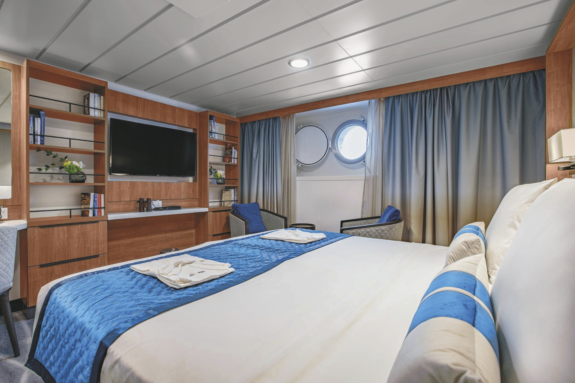 Alle Suiten sind Außenkabinen und bieten Sitzmöglichkeiten, einen großen Kleiderschrank, ein privates Badezimmer, eine Klimaanlage, eine Minibar und TV.