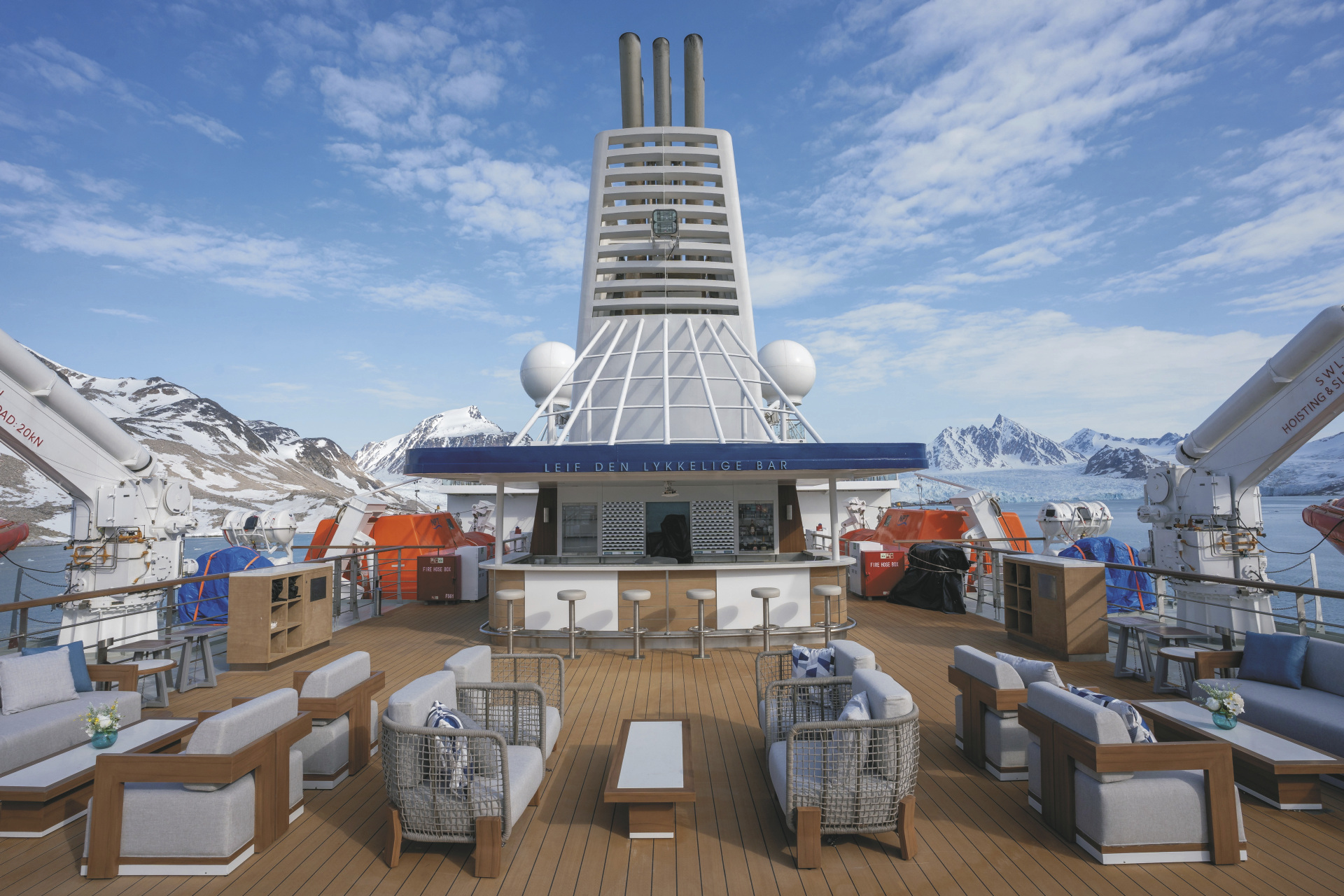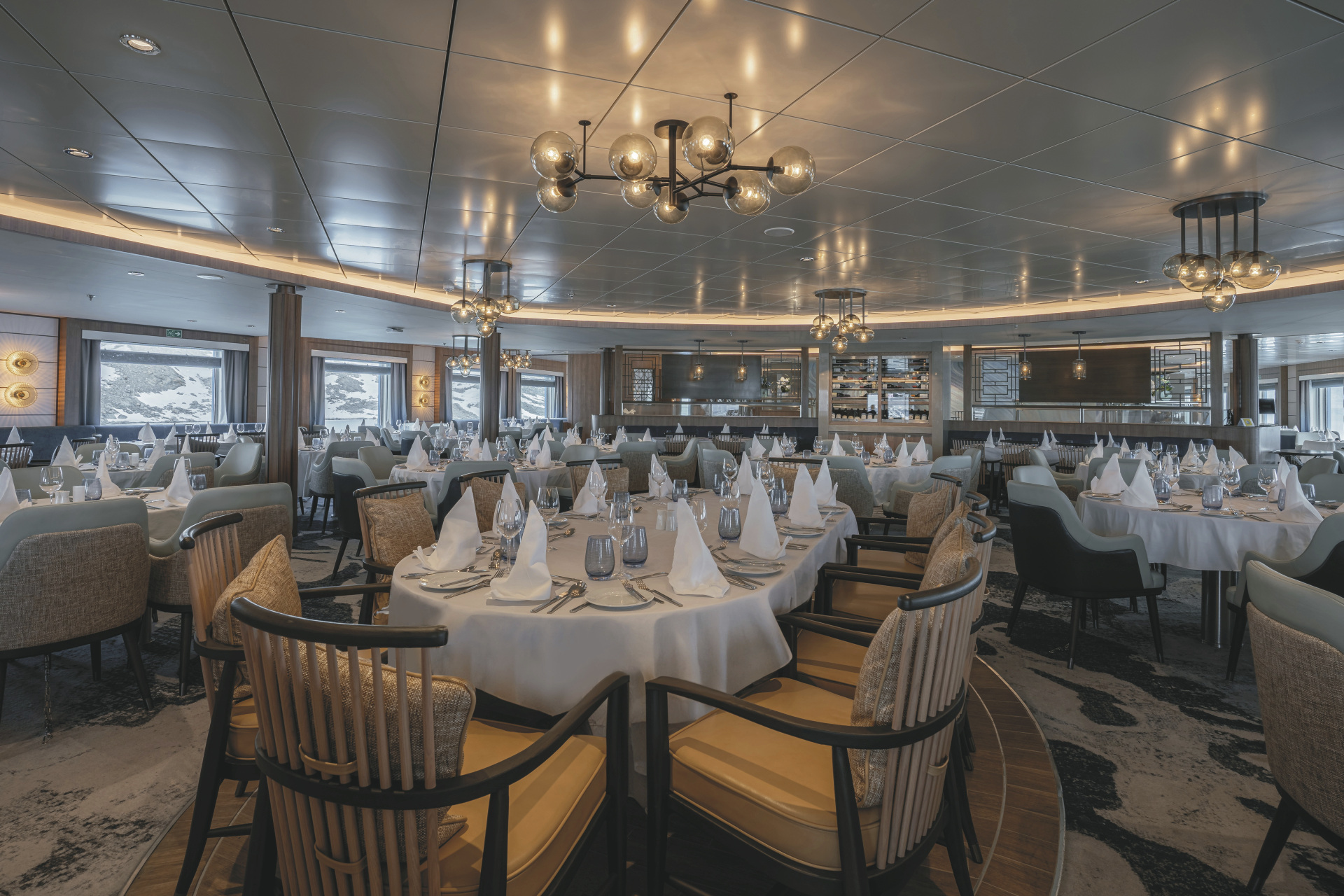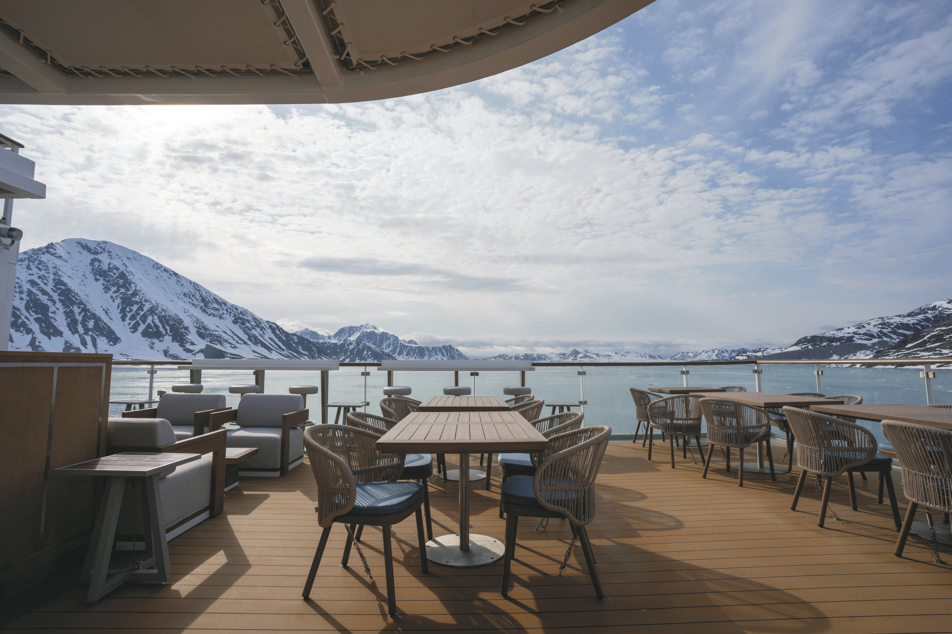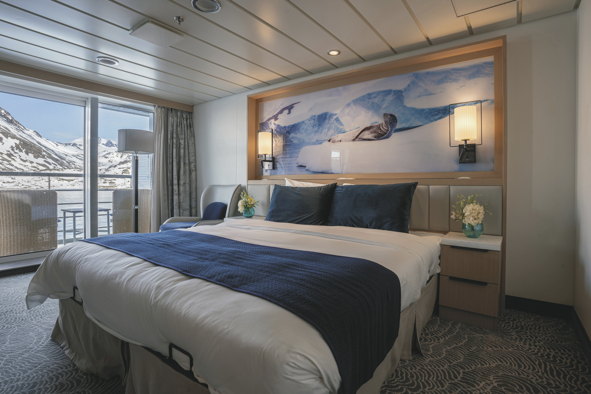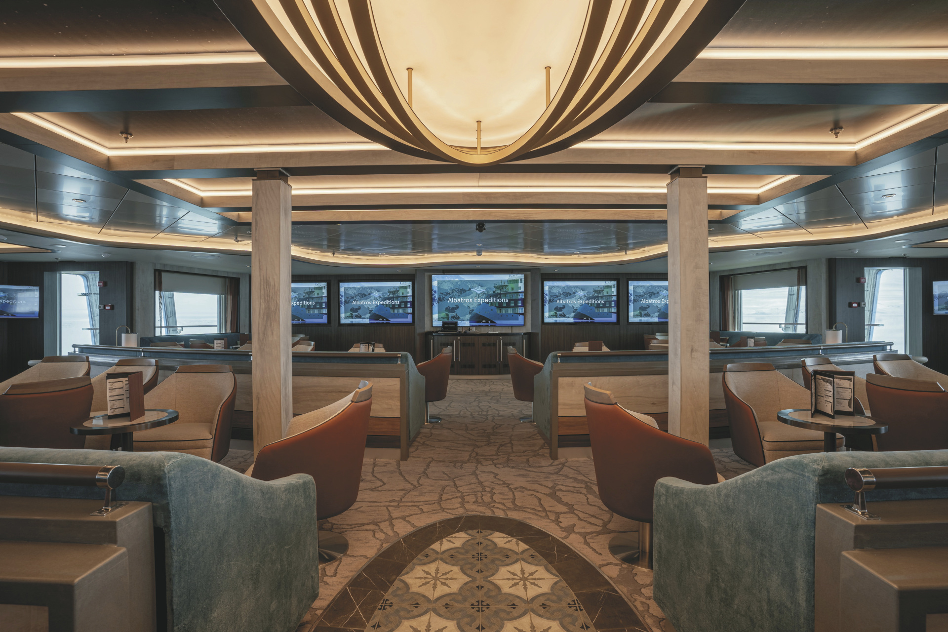 An Bord erwartet die Gäste eine reichhaltige Ausstattung: Zahlreiche Aussichtspunkte und weitläufige Deckbereiche erlauben durchgehend beeindruckende Panoramen der polarer Landschaften. Für Komfort und Erholung sorgen unter anderem zwei panoramische Jacuzzis, ein Wellness- und Spa-Bereich mit Sauna und Fitnessraum sowie großzügige Lounges und Beobachtungsräume. Die Ocean Albatros verfügt über geräumige Außenkabinen mit Meerblick, von denen die meisten private Balkone besitzen, sodass die beeindruckende Natur jederzeit im Blickfeld bleibt. Ein beheizter Mudroom mit vier Außentüren erleichtert das sichere und effiziente Besteigen der Zodiacs für Landungs- und Erkundungsfahrten. Den maximal 169 Passagieren stehen 100 Crewmitglieder gegenüber.